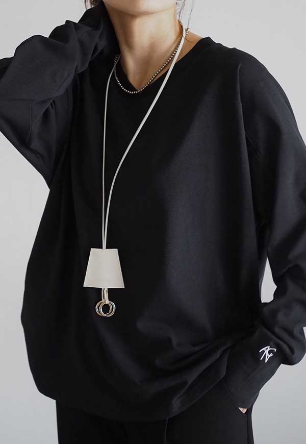 主役になれるレザーネックレス。本革100%を使用。つや感がある皮で使い込むほどに馴染んでいき、独特のヴィンテージ感漂う”艶感”を生み出します。ネックレスの先部分はリング付きとなりますのでそのままでもキーリングとしてもお使いいただけます。また、レザーバングルとセットで合わせていただくのがおすすめです◎