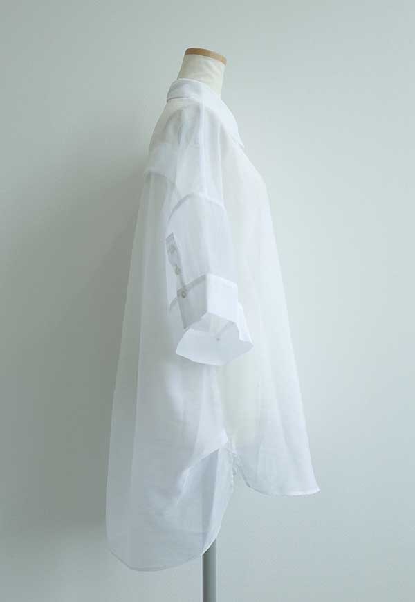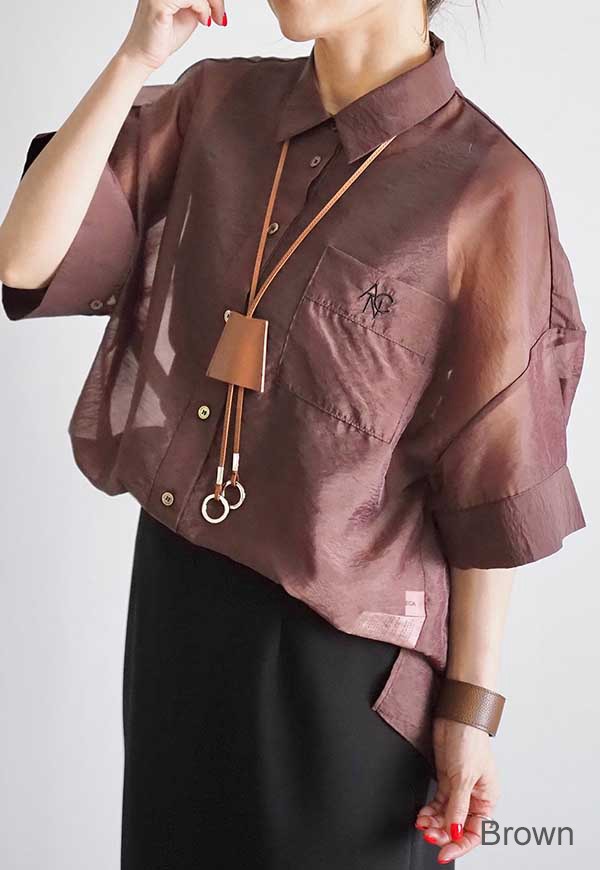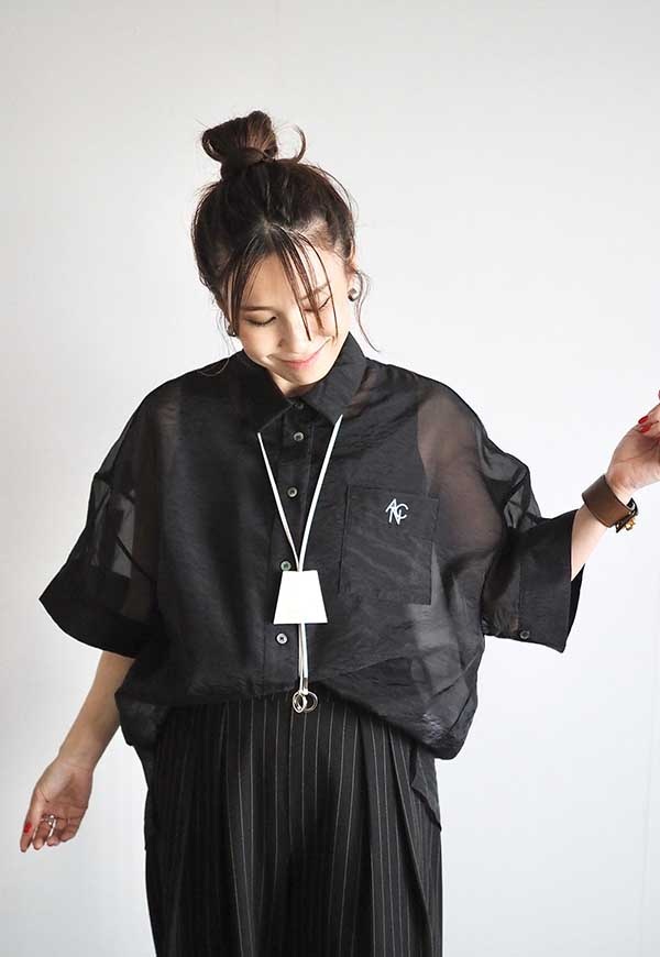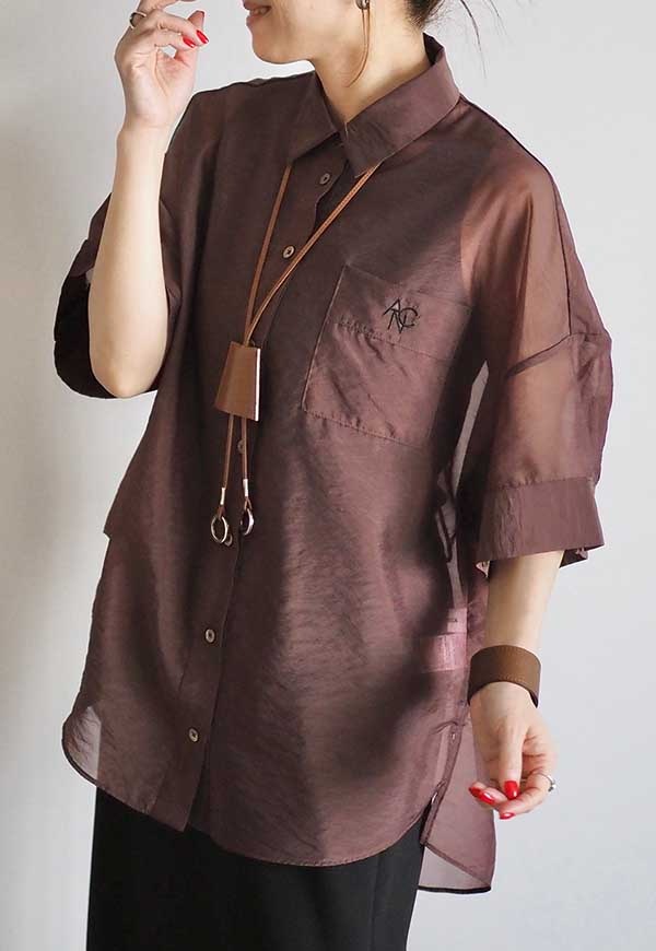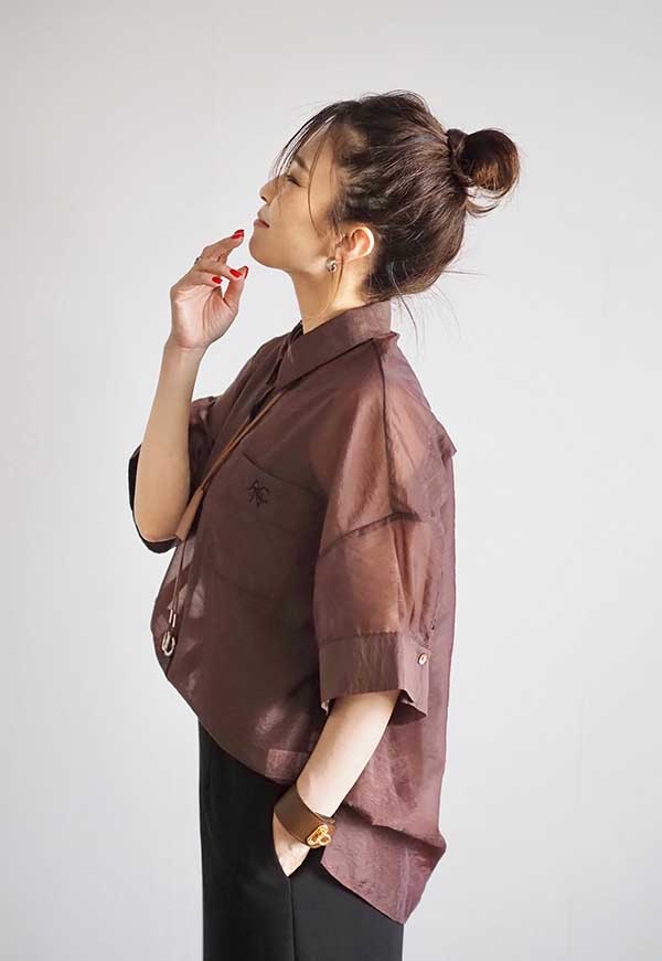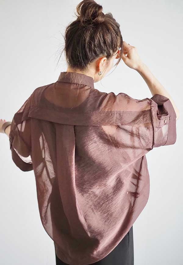 軽やかで透け感のあるシアー素材を使用した、上品な印象のシャツです!