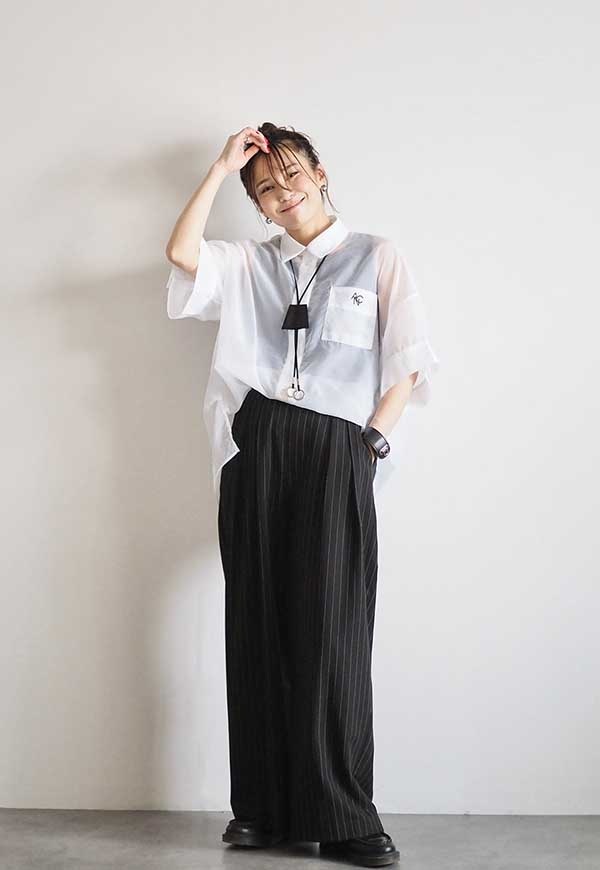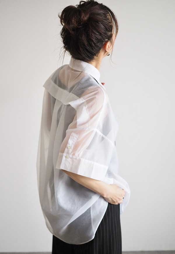 【きちんと感と抜け感、両方を叶える大人のシアーシャツ】