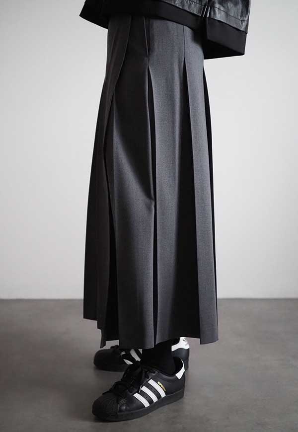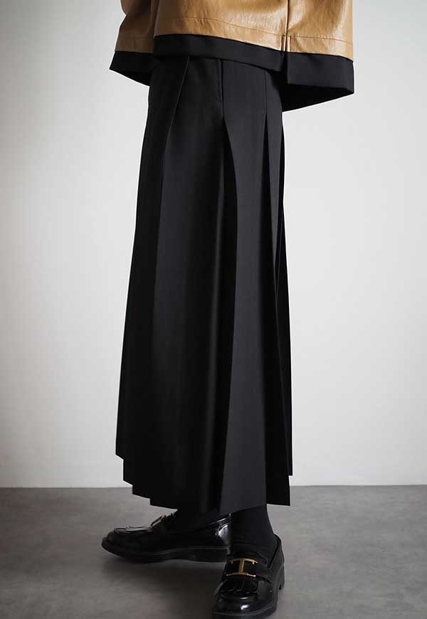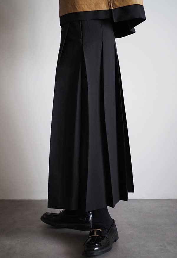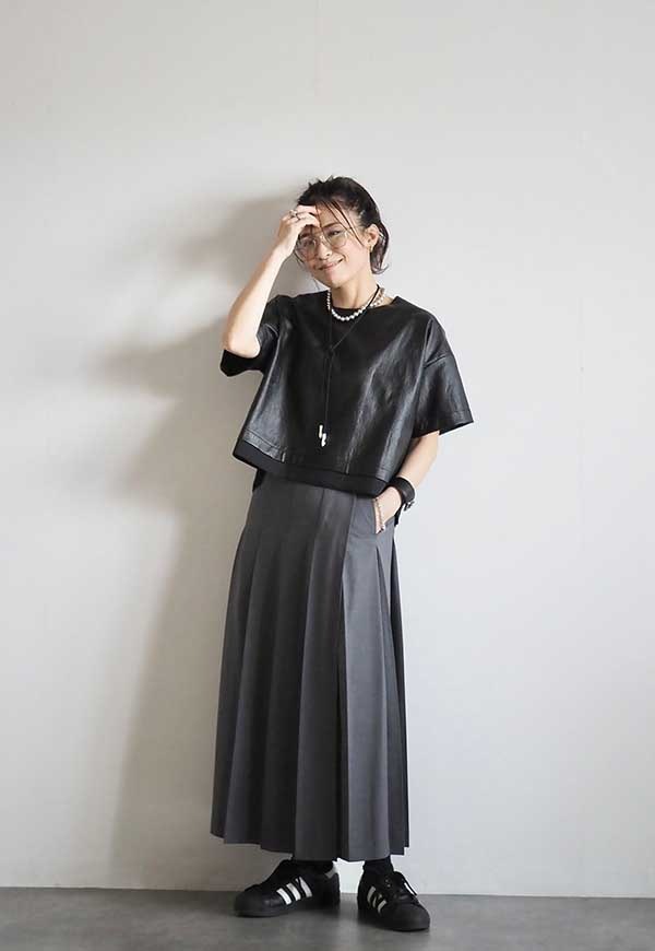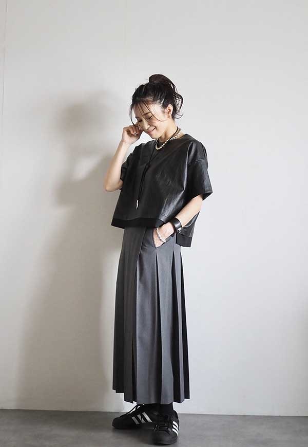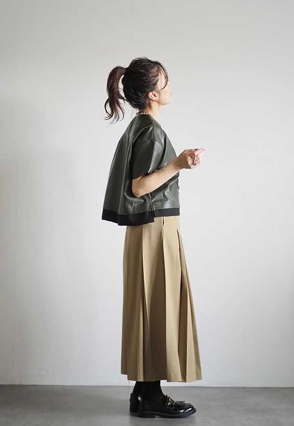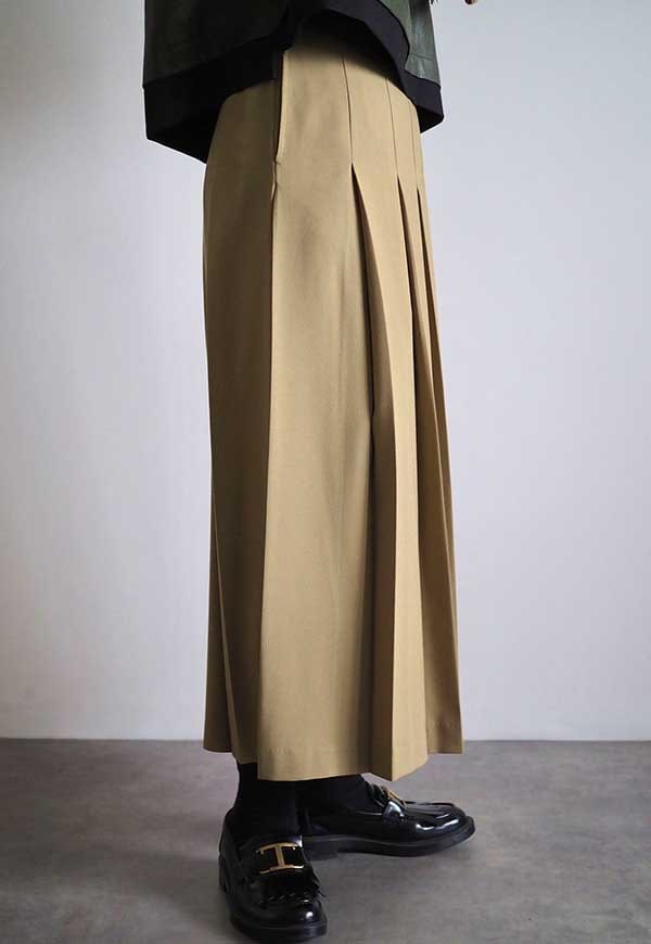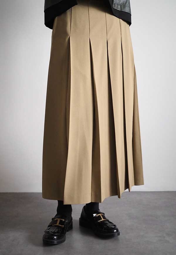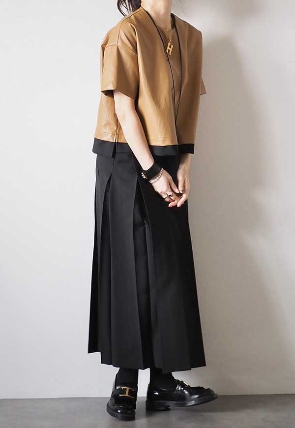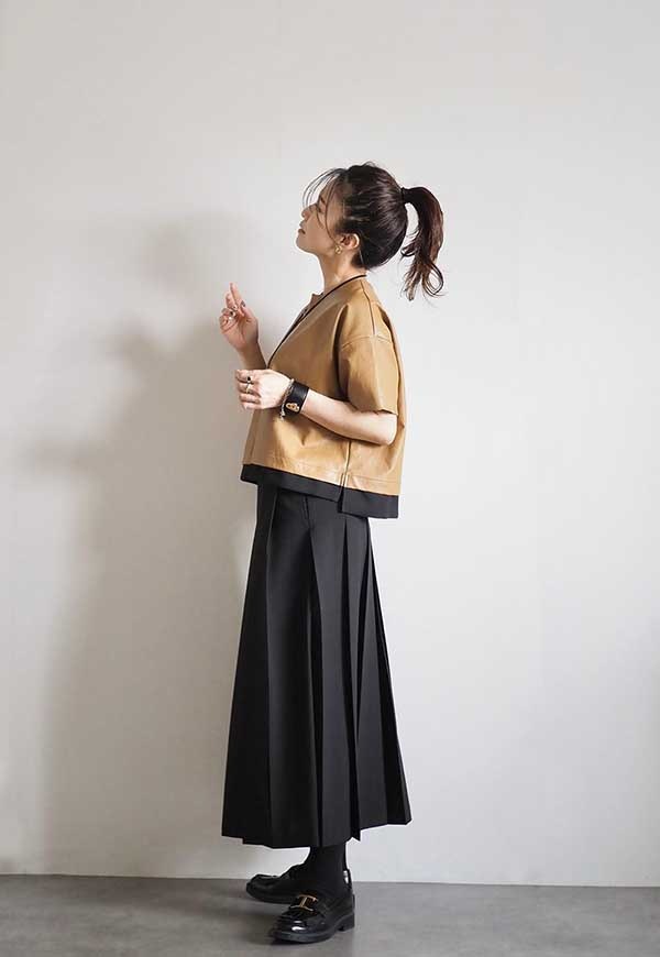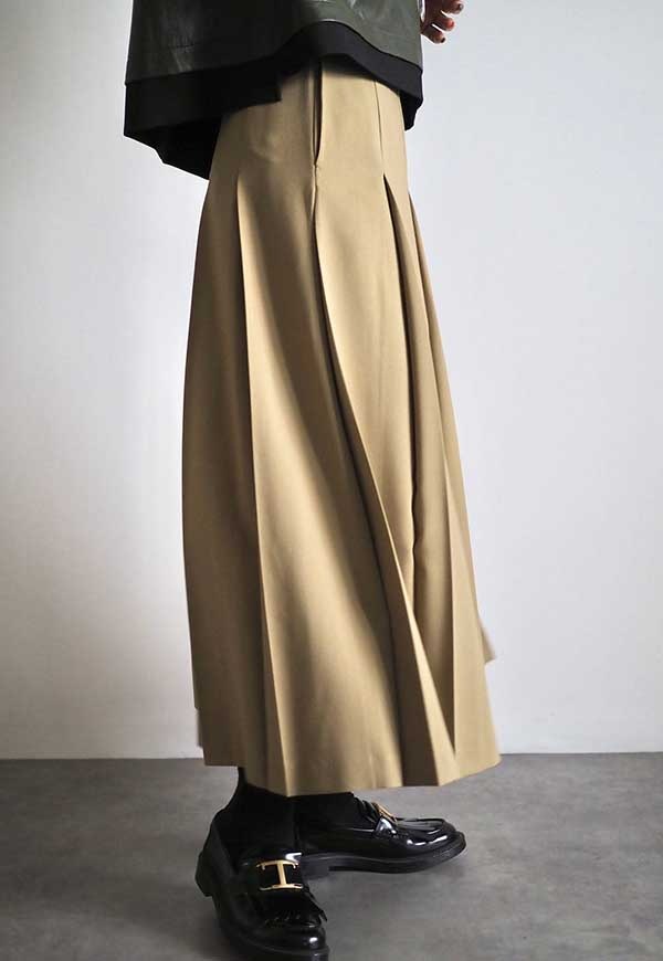 シンプルなトップスを合わせるだけで、プリーツの繊細な動きが引き立ちます。