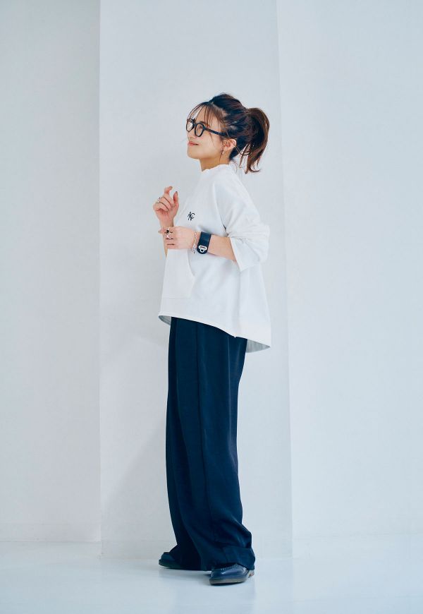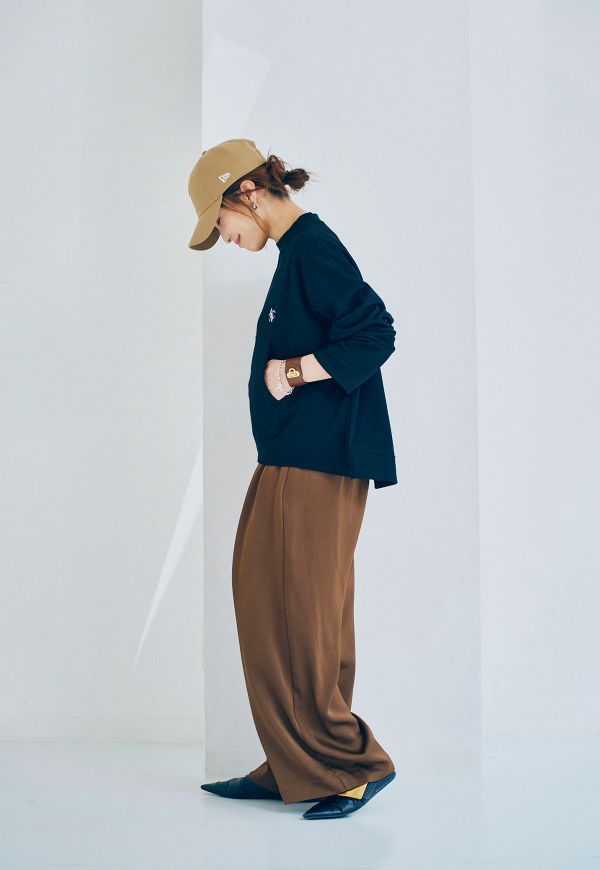 腰回りにゆとりのあるオールゴムの仕様は、気になる腰回りを隠してくれるので、トップスをインしてスッキリとさせてスタイリングがおススメです。