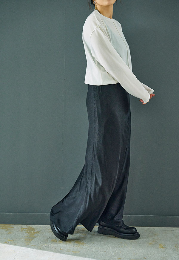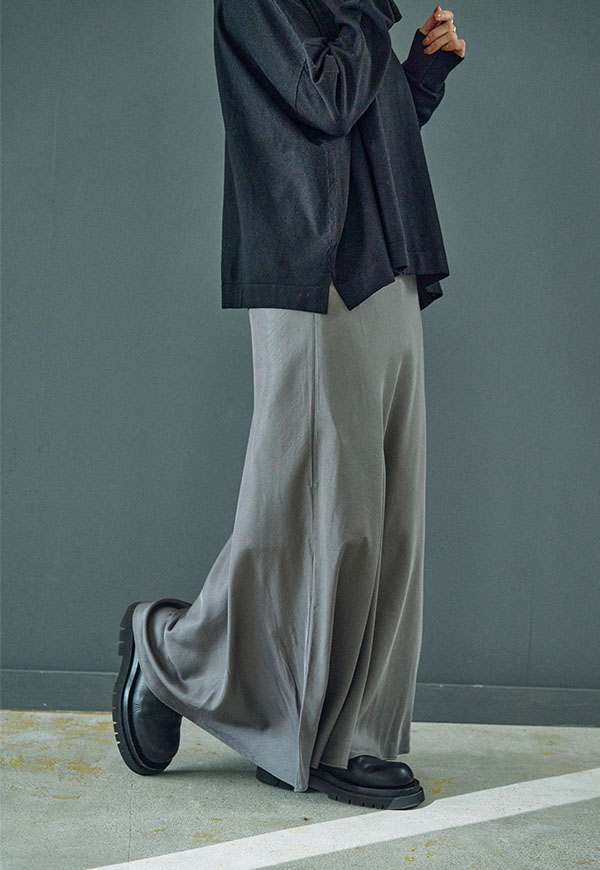 マットな表面感と落ち感のある素材で、カジュアルにもキレイめにも対応可能です。