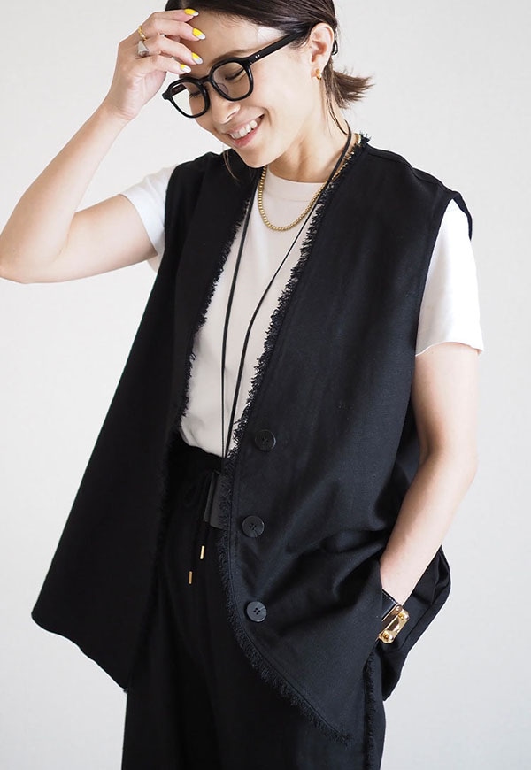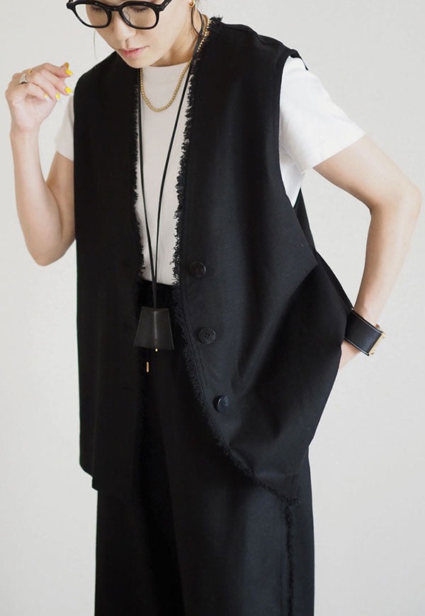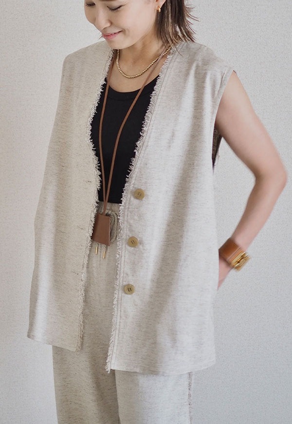 スタイリングにプラスするだけでオシャレに仕上がるベストです。
