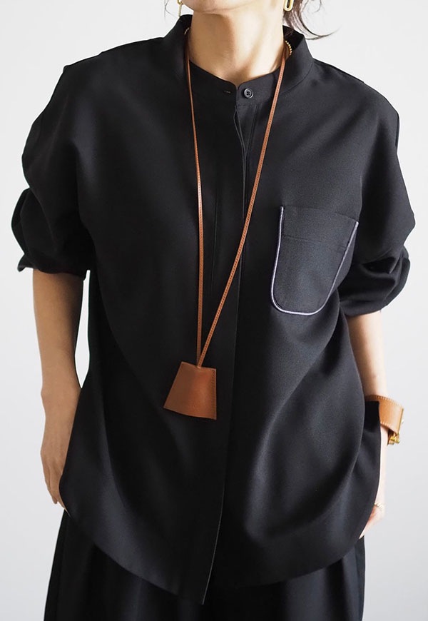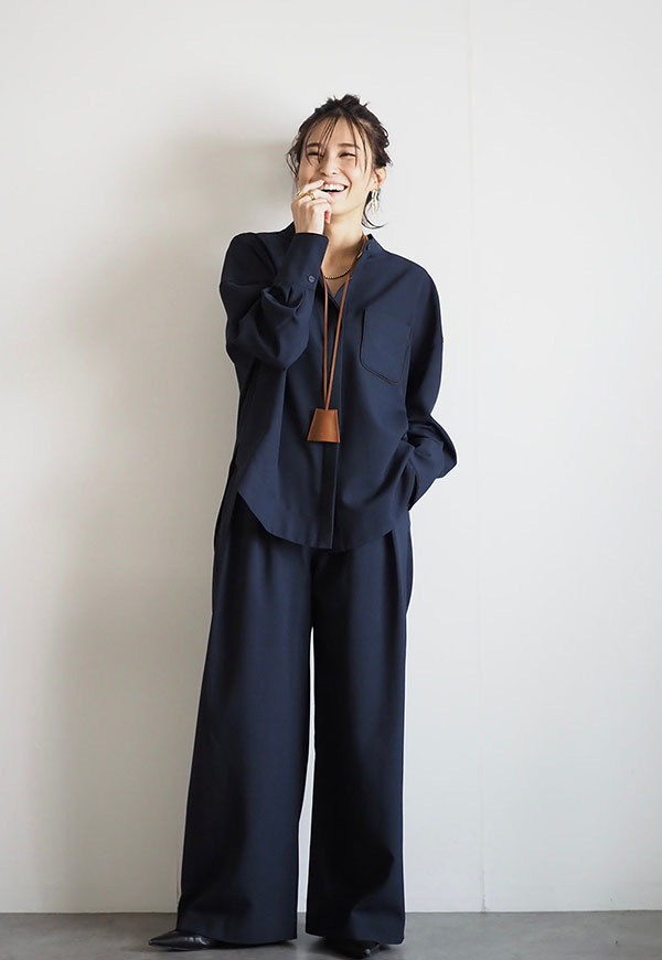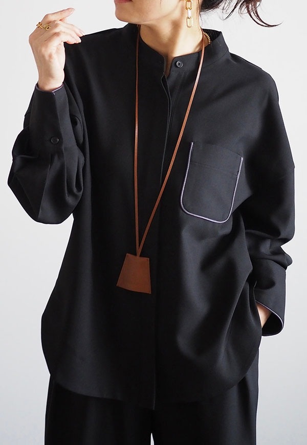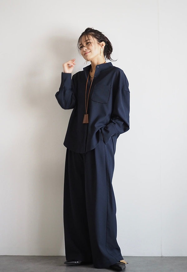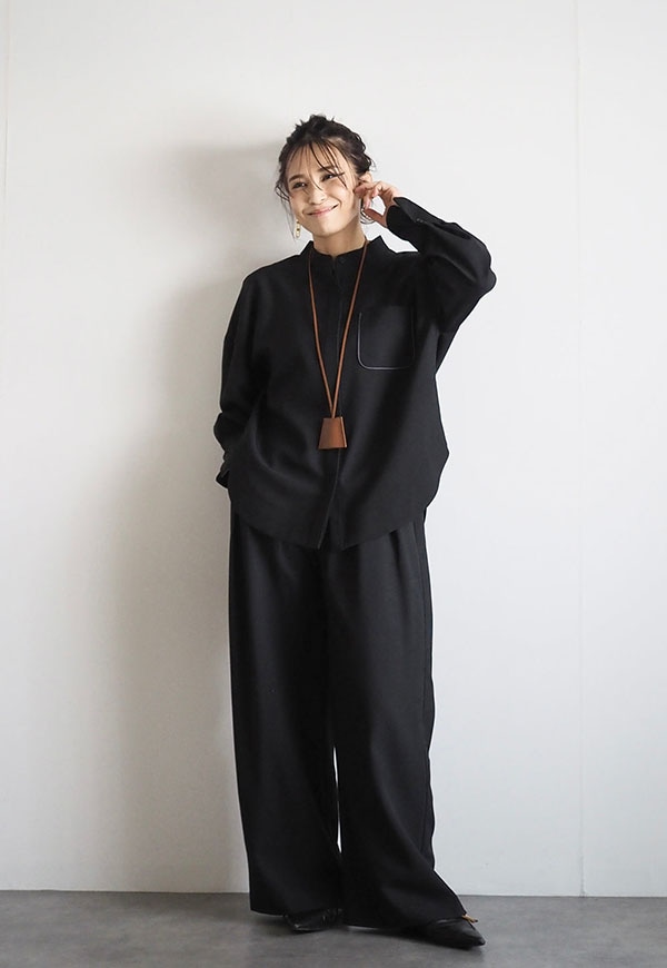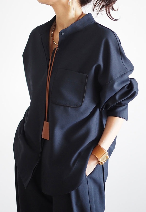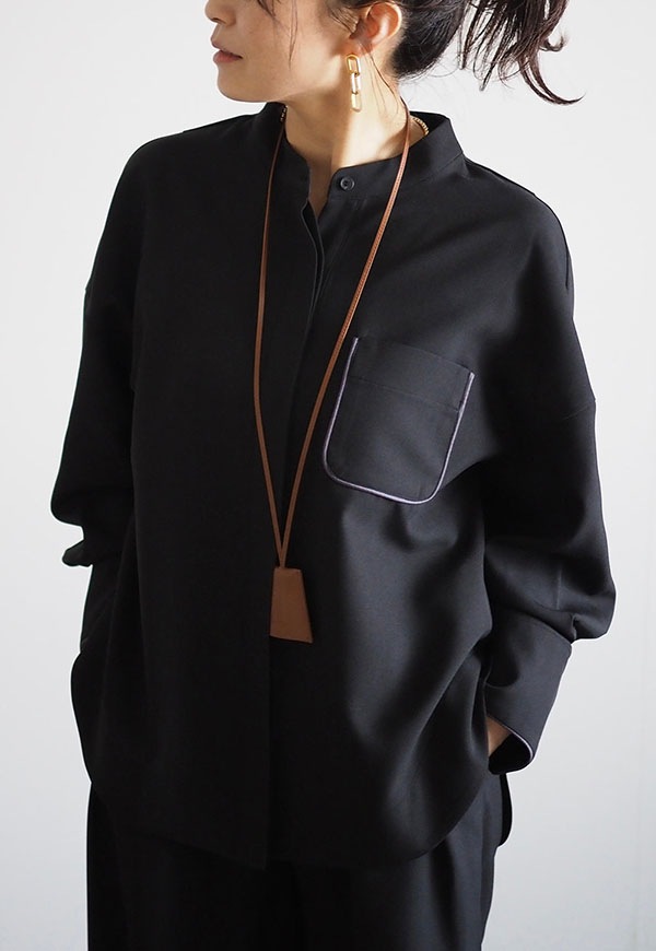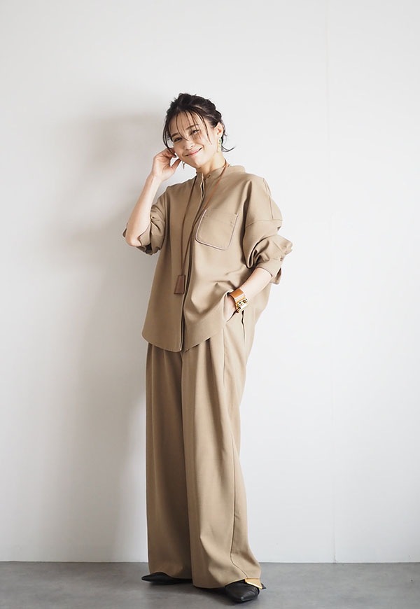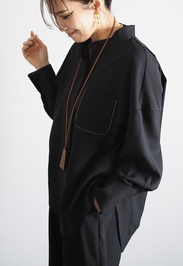 パイピングタックパンツと同生地のため、セットアップで着用いただくのもおすすめです。