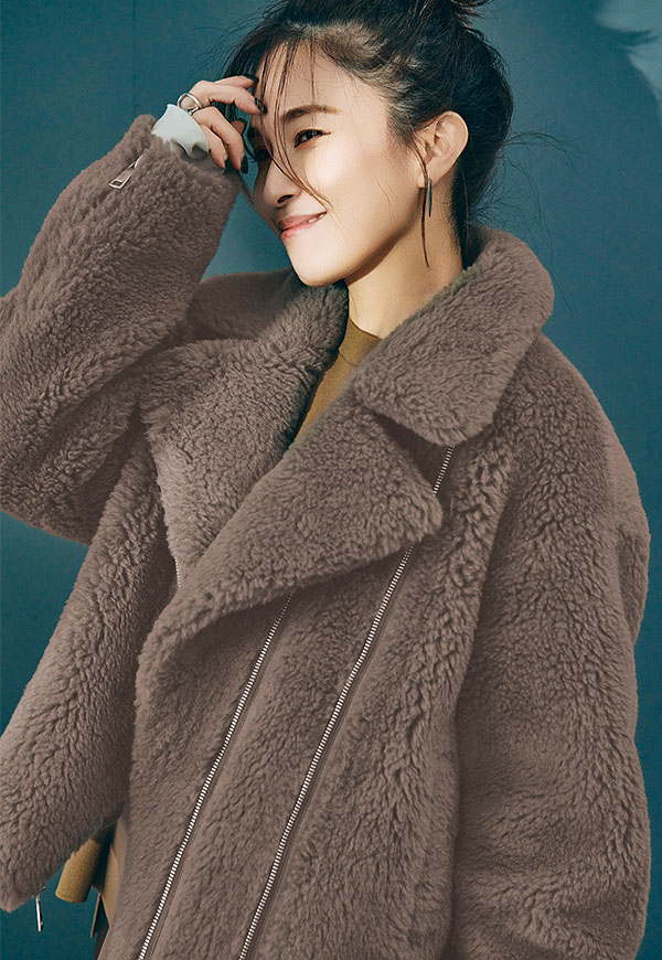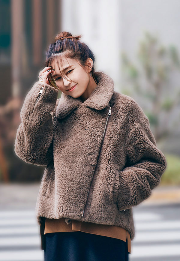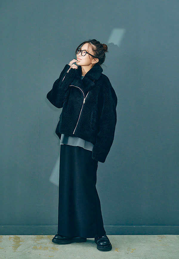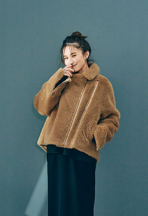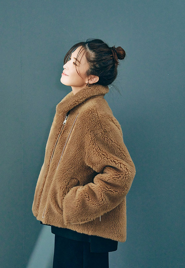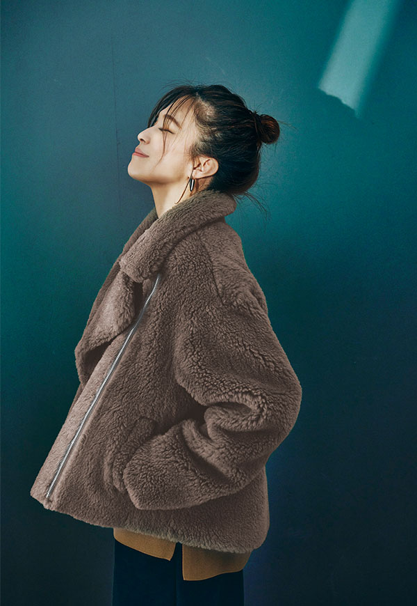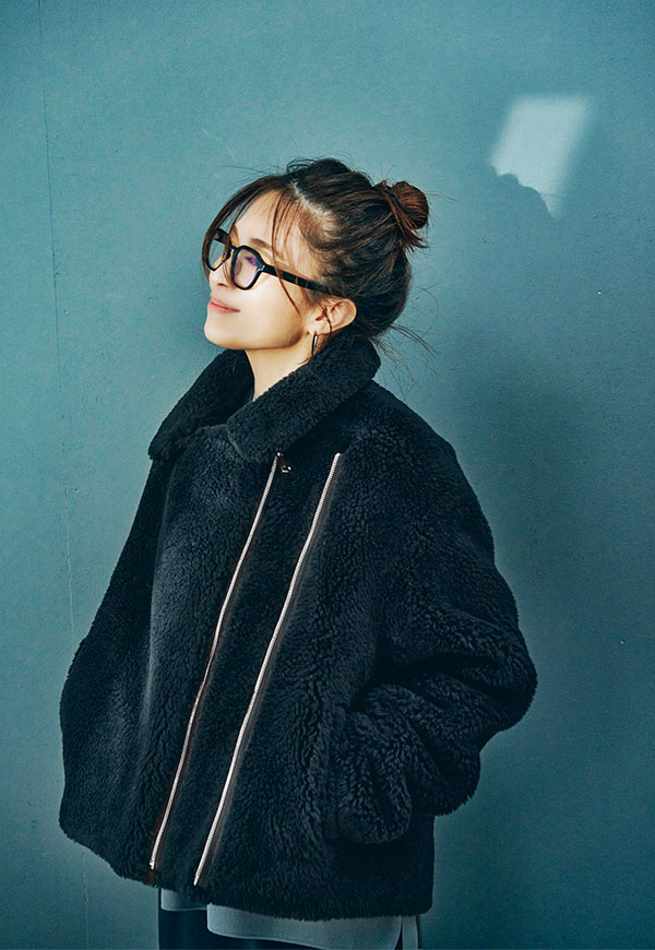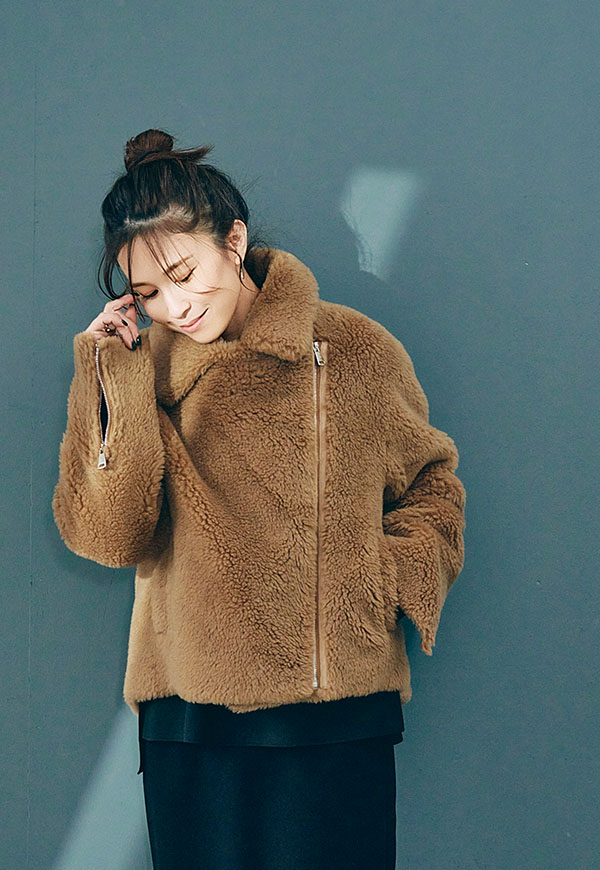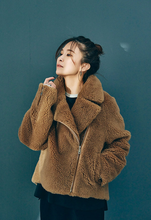 しっかり留めてスタンドカラー風にまとめれば防寒性が高く、ファスナーを片方のみ閉めると抜け感のある大人のこなれた雰囲気に。