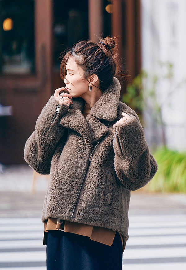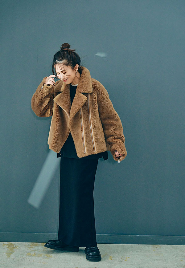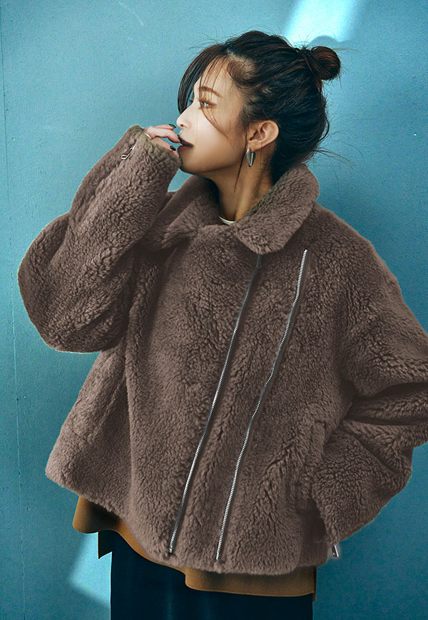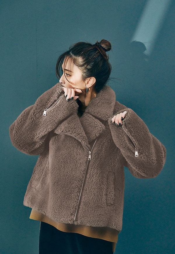 ボリューム感のあるボア素材を使用し、保温性に優れたライダースジャケットです。