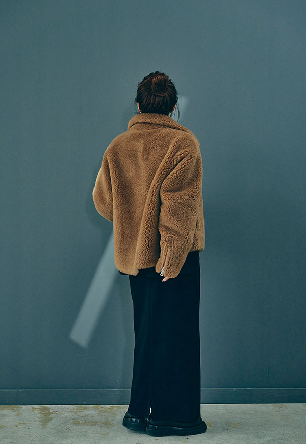 毛混の表生地は、ふっくらとした風合いがありながらも軽さのある着心地。裏地付きのため袖通しも良く、ニットの上からでもストレスなくご着用いただけます。