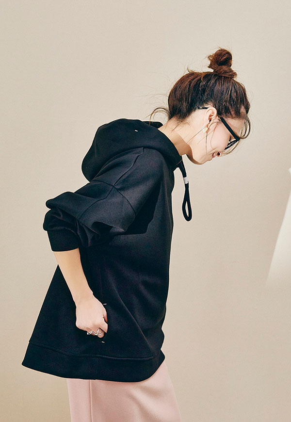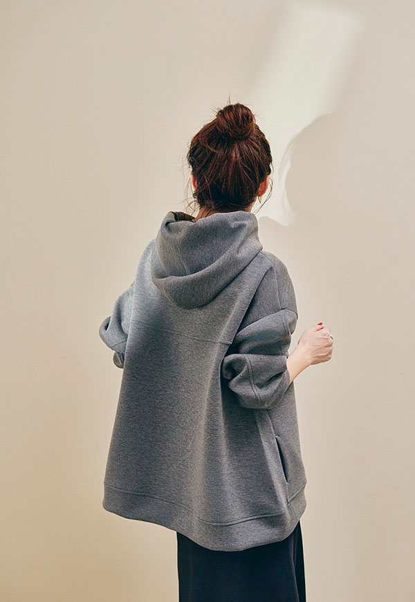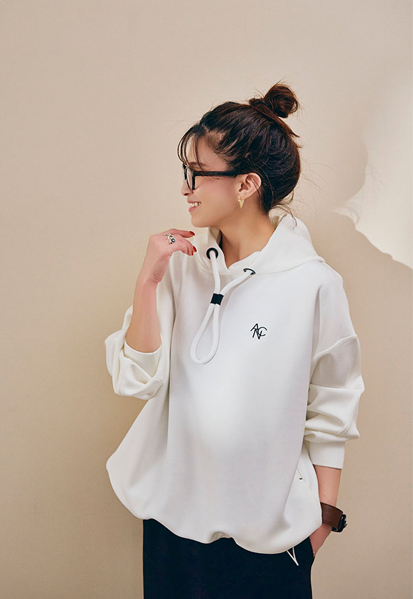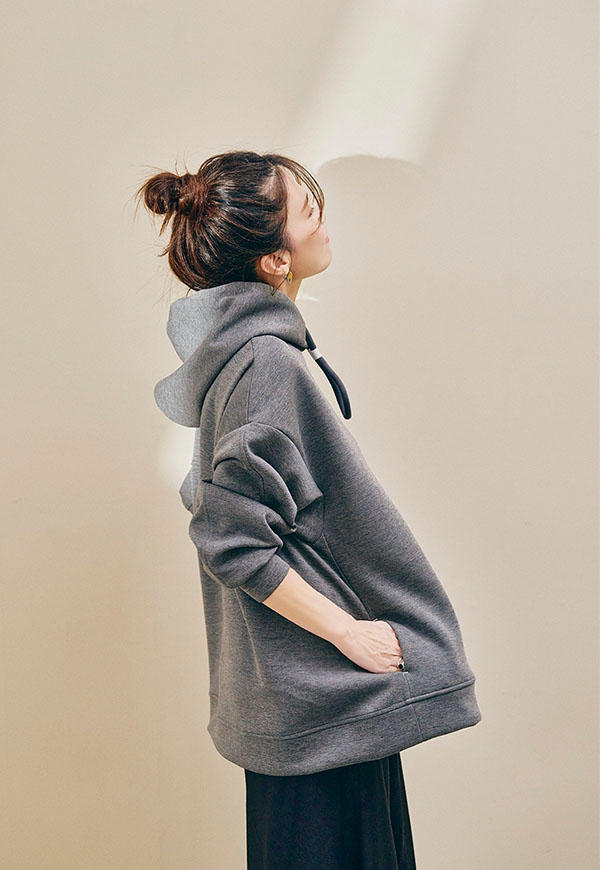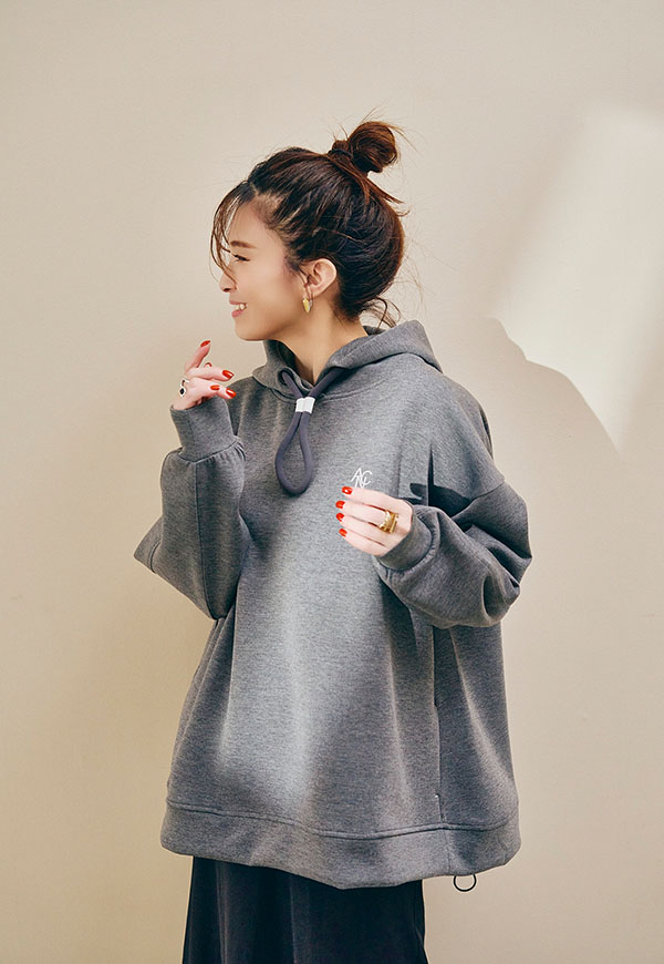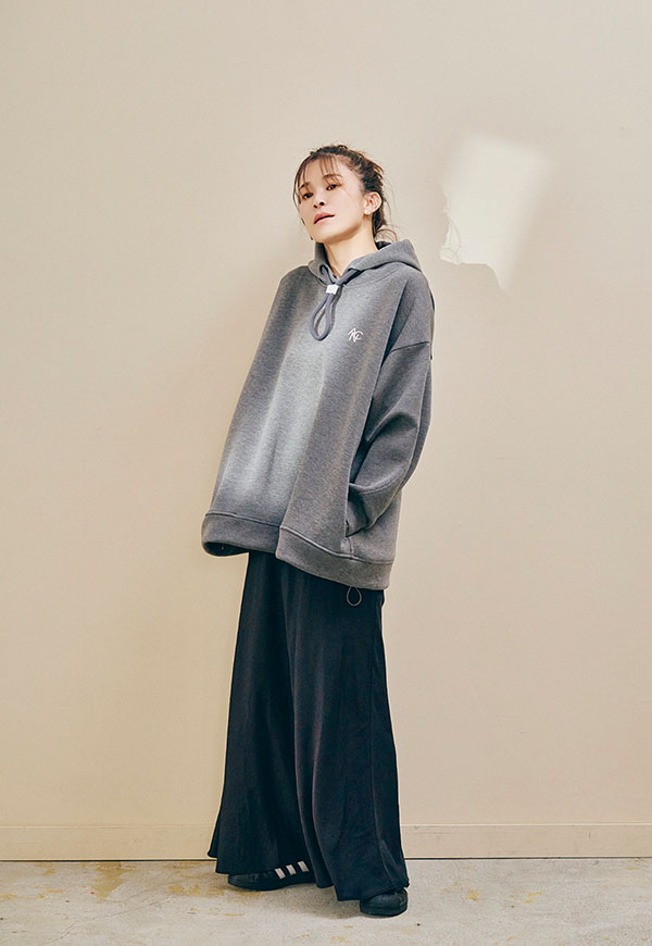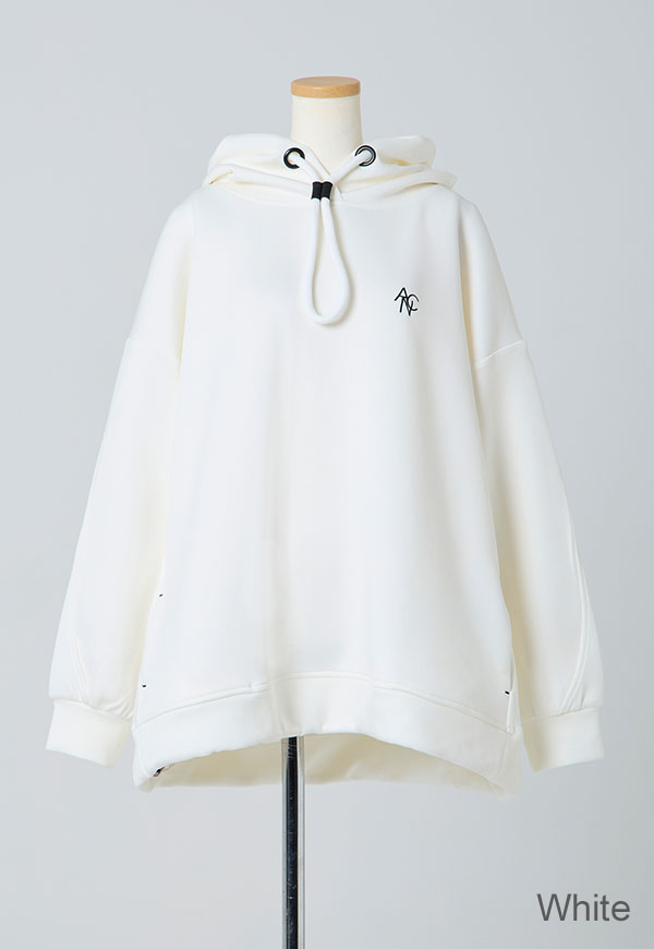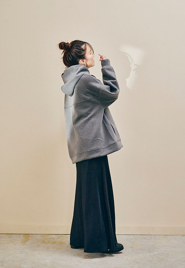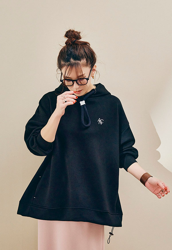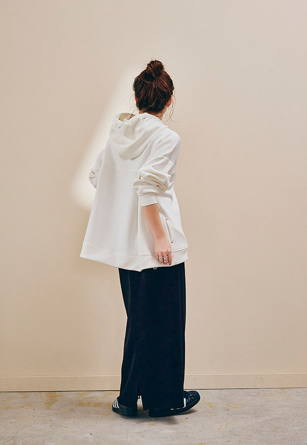 肌ざわりの良さが際立つポンチ素材をたっぷりと使用し、ANIECAらしいビッグシルエットに仕上げたフーディー。