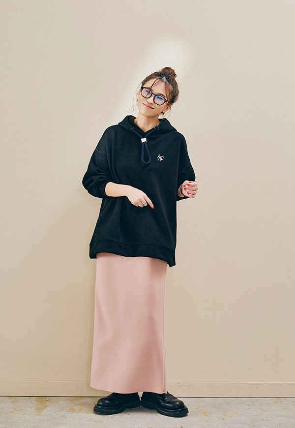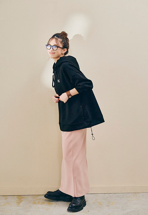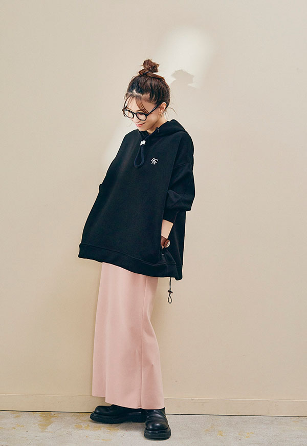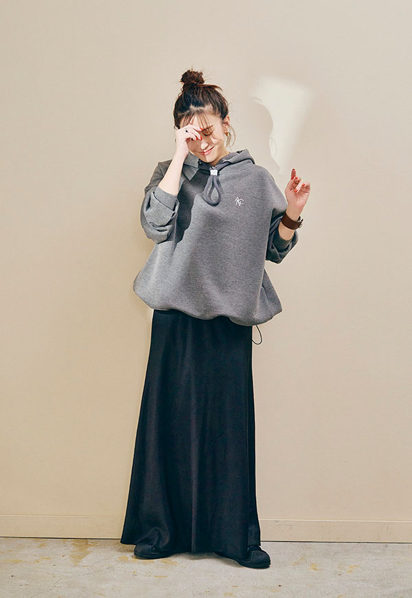 裾を絞ってスカートやワイドパンツと合わせれば、抜け感のあるリラックススタイルも楽しめます。