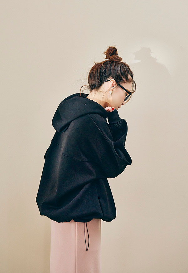 裾にはゴムコードを施し、シルエットの調整が可能になります。