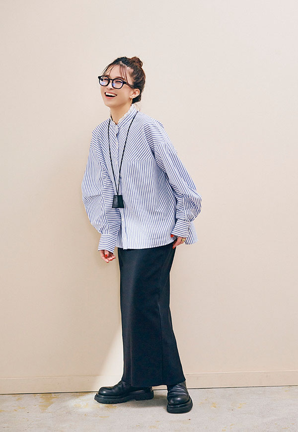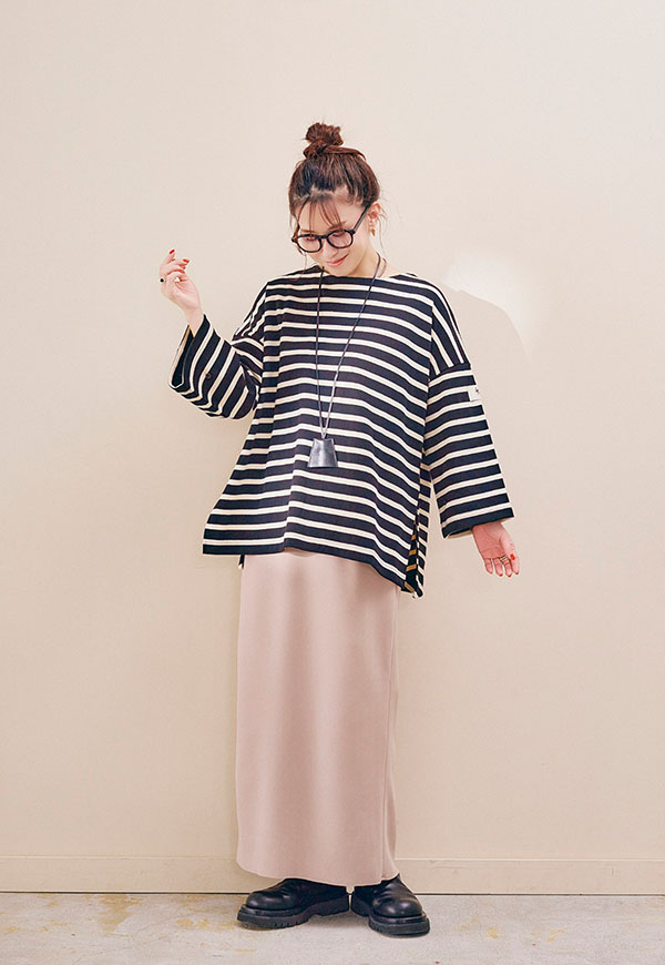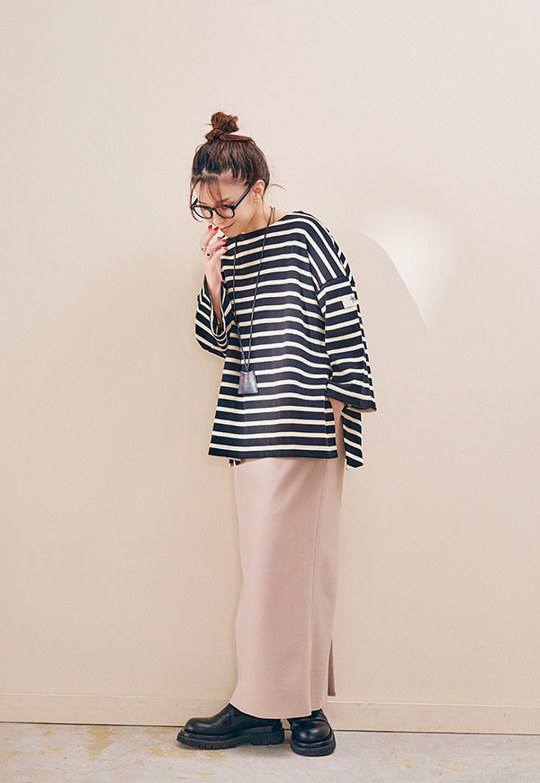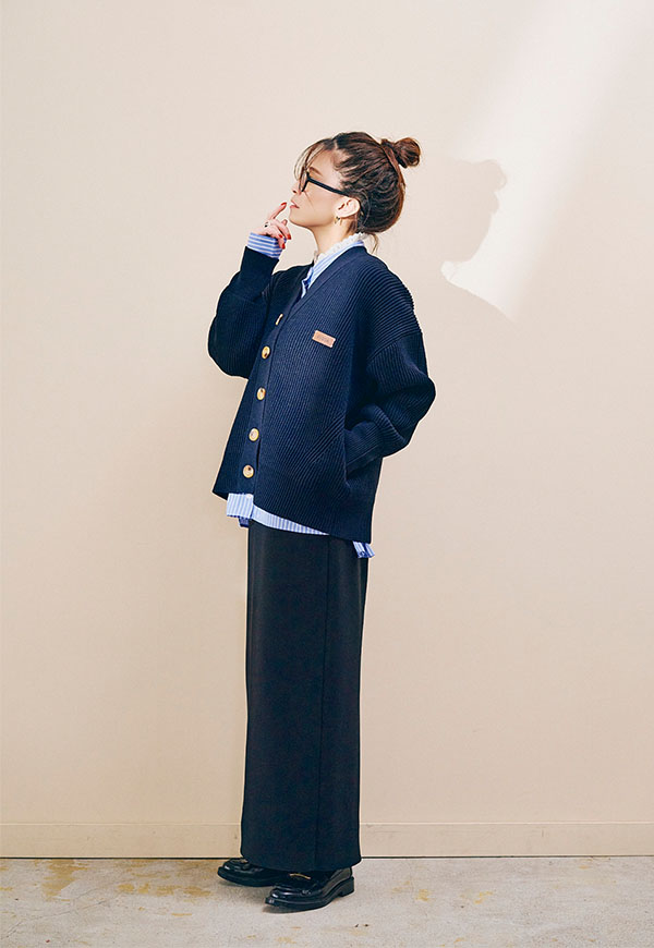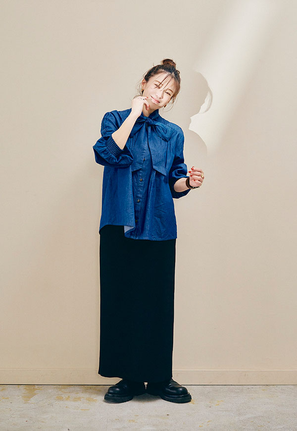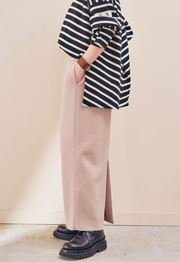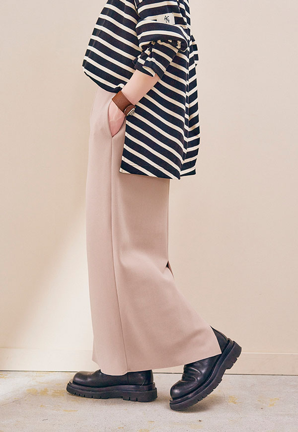 ブラウスやシャツと合わせればきれいめな印象に、カットソーやスウェットと合わせれば程よくカジュアルダウンしたスタイリングも楽しめます。
