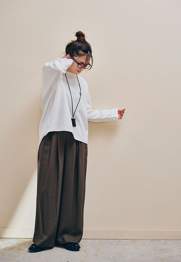 トップスをインしてもアウトしてもバランスが取りやすく、デイリーからお出かけまで幅広いシーンで活躍します。