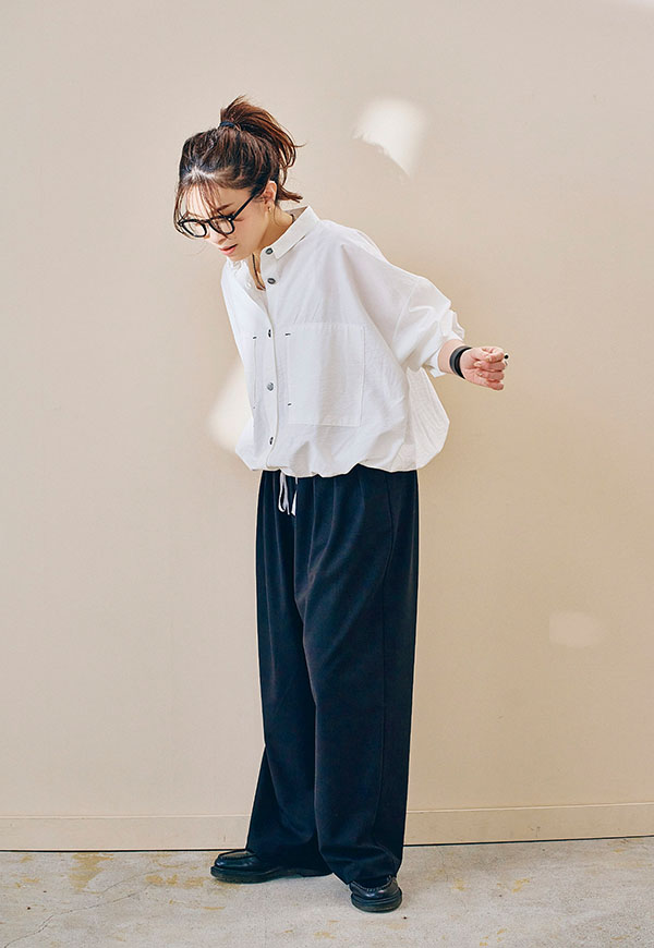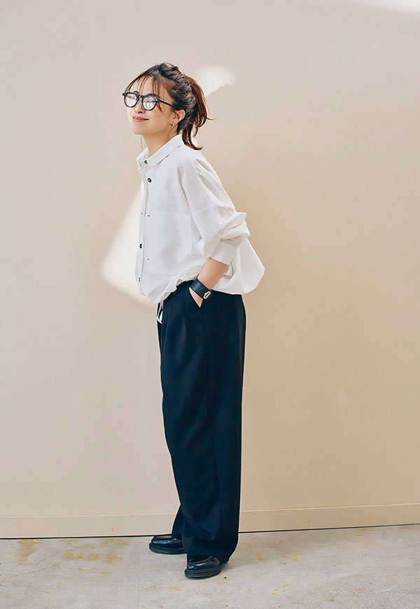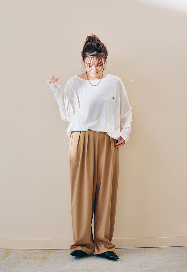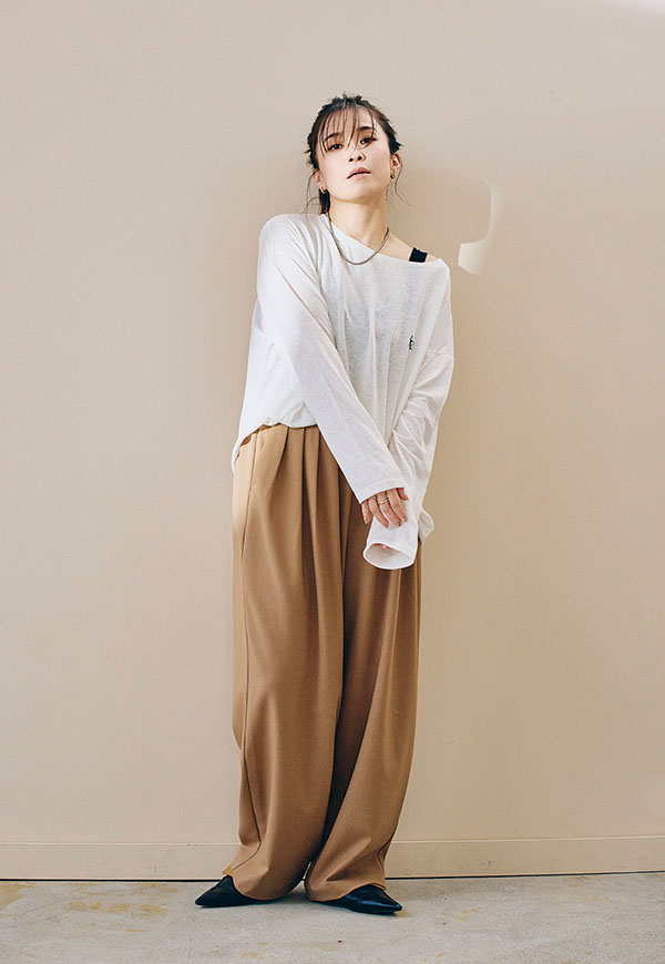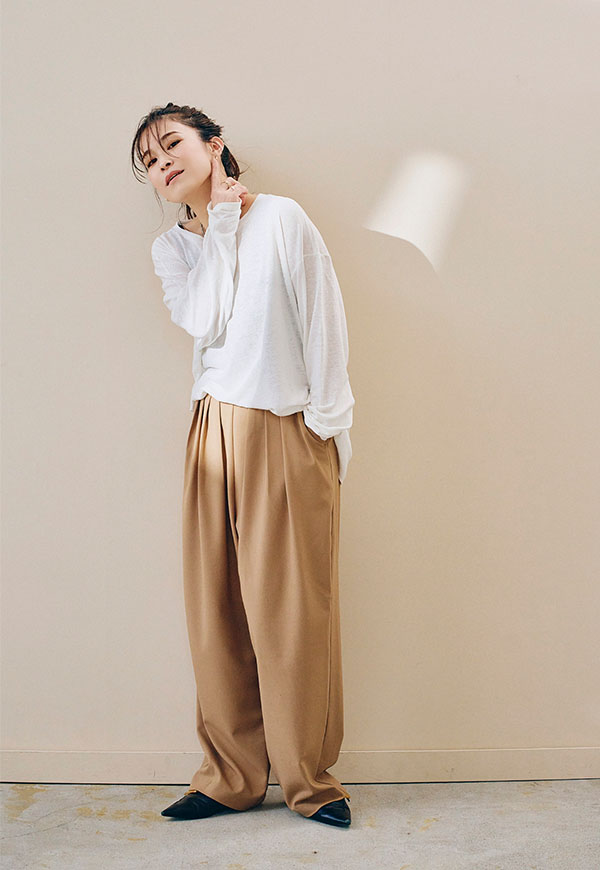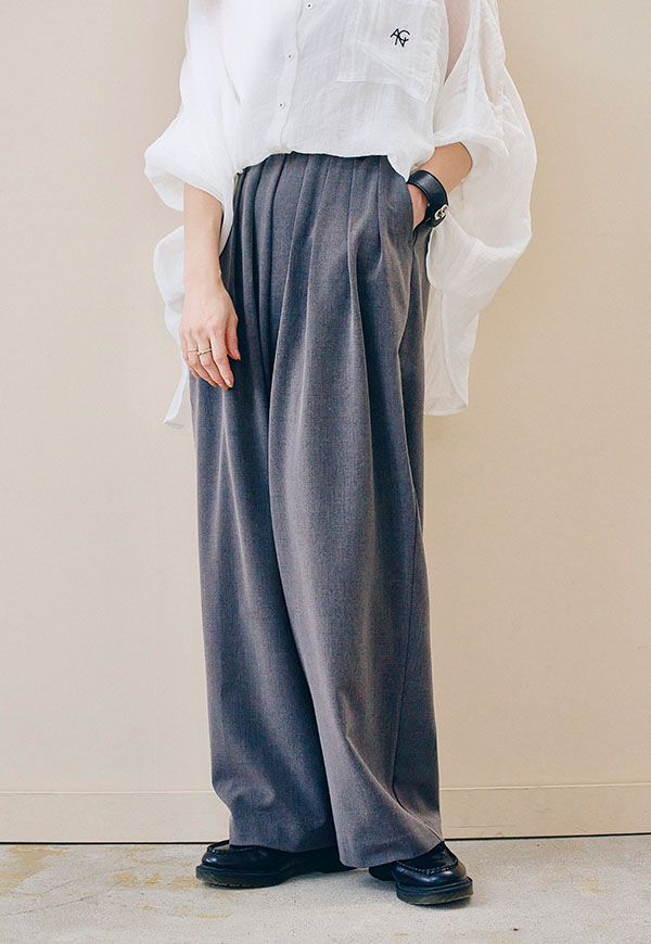 コンパクトなトップスを合わせれば、タックの立体感がより際立ち、バランスの良いスタイルに。シャツやブラウスを軽くインするだけで、自然とこなれた雰囲気が生まれます。