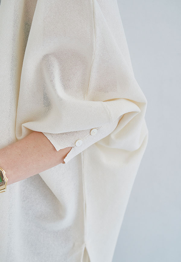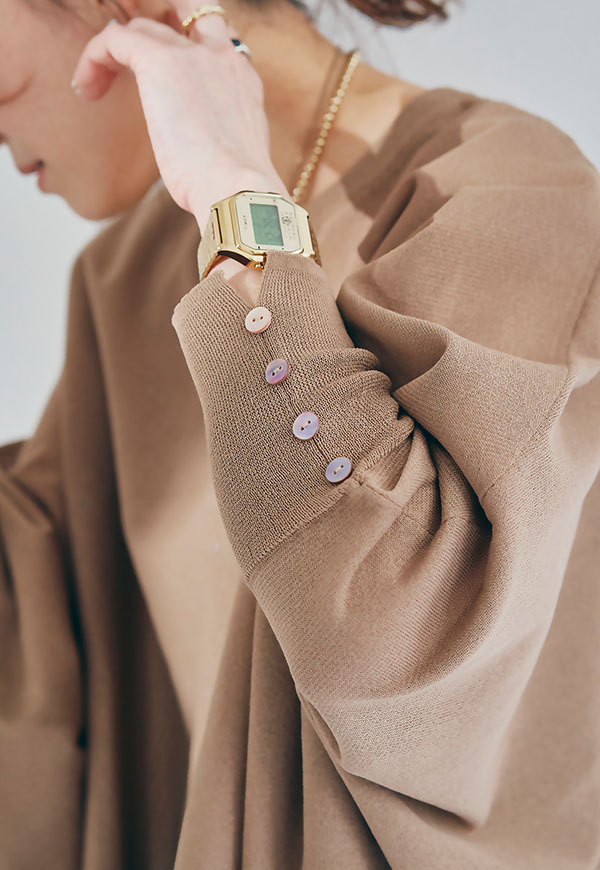袖口にはシェルボタンをあしらい、カフスのスリットがさりげないアクセントに。