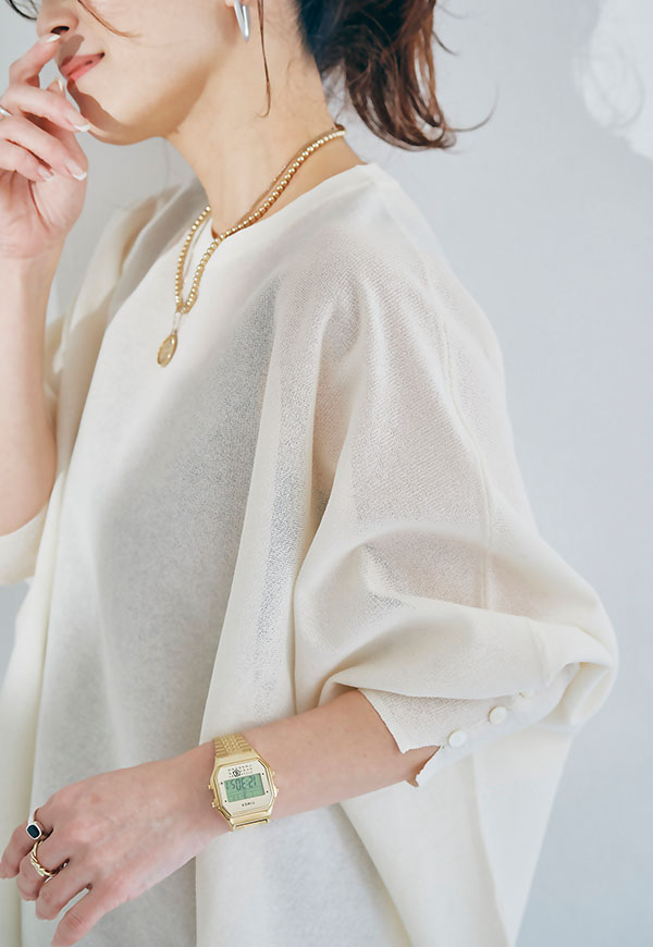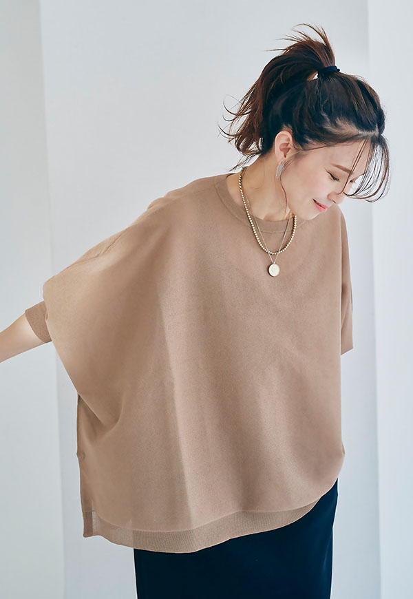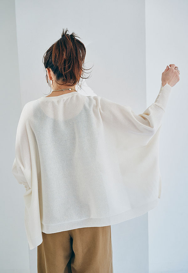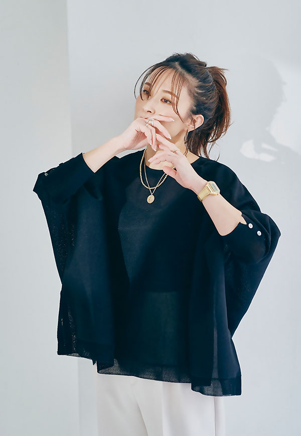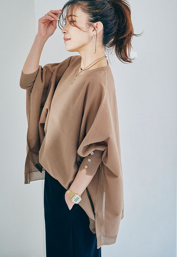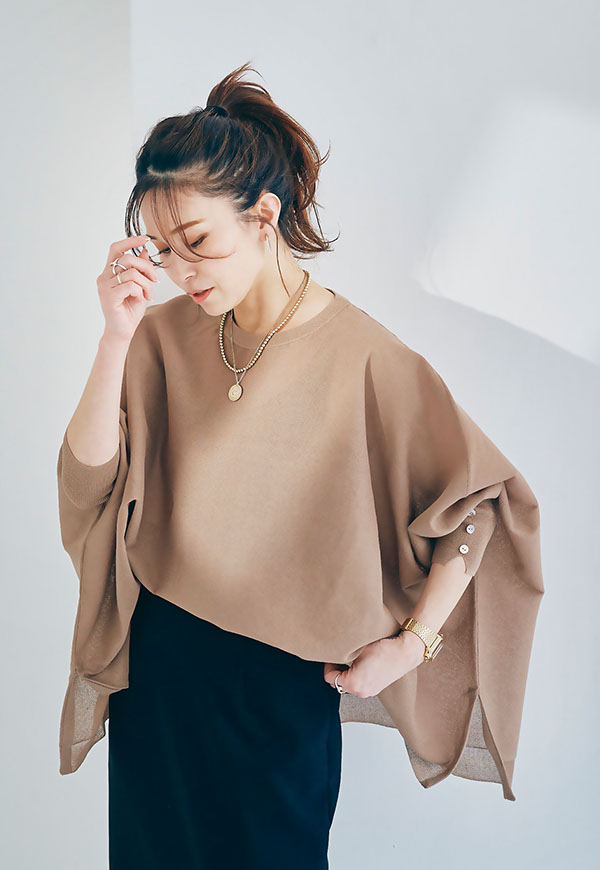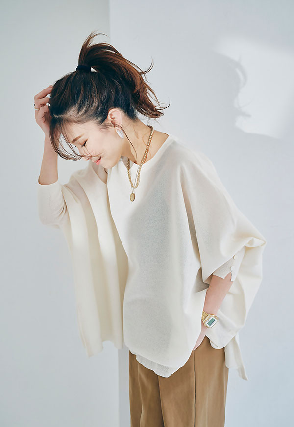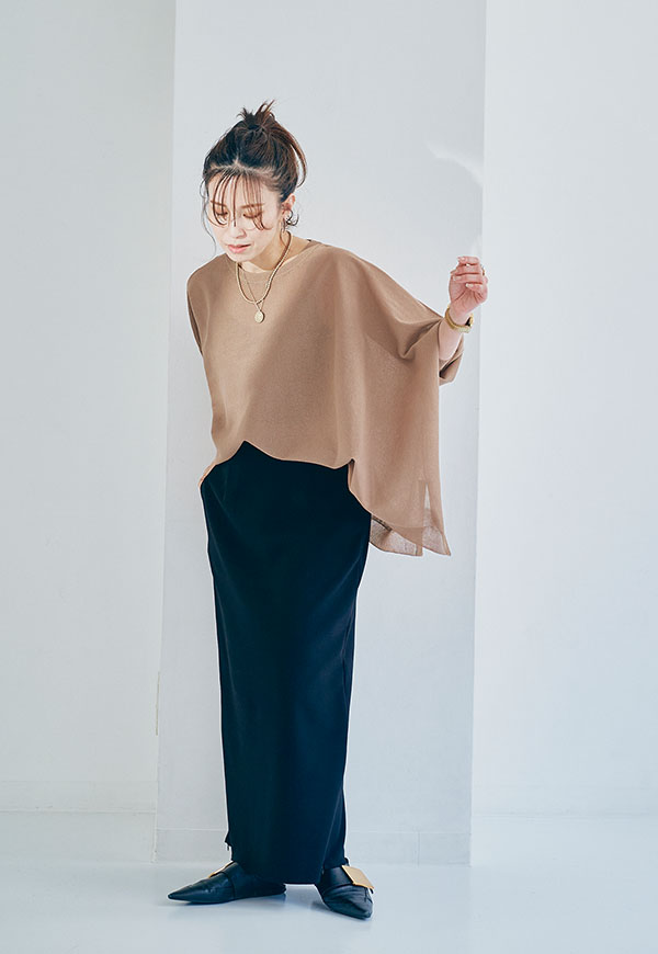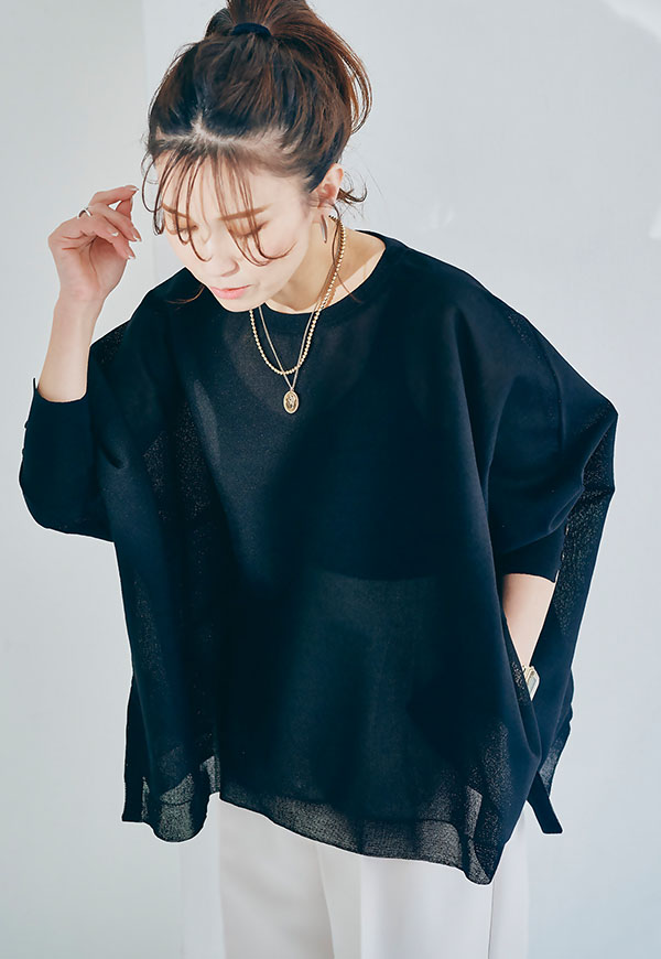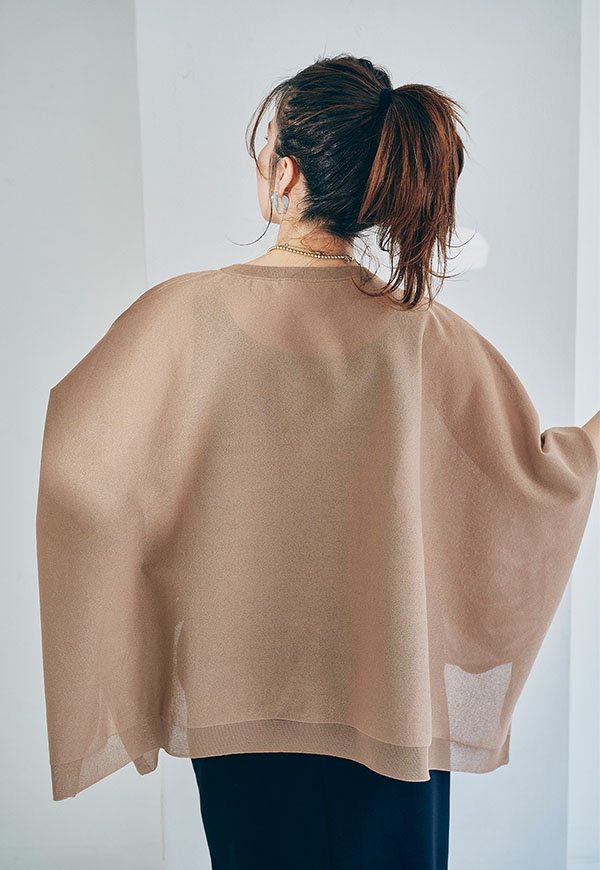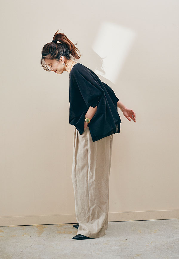 軽やかな素材感なので、春から初夏にかけて快適に着用でき、インナー次第で透け感を楽しむスタイリングも◎