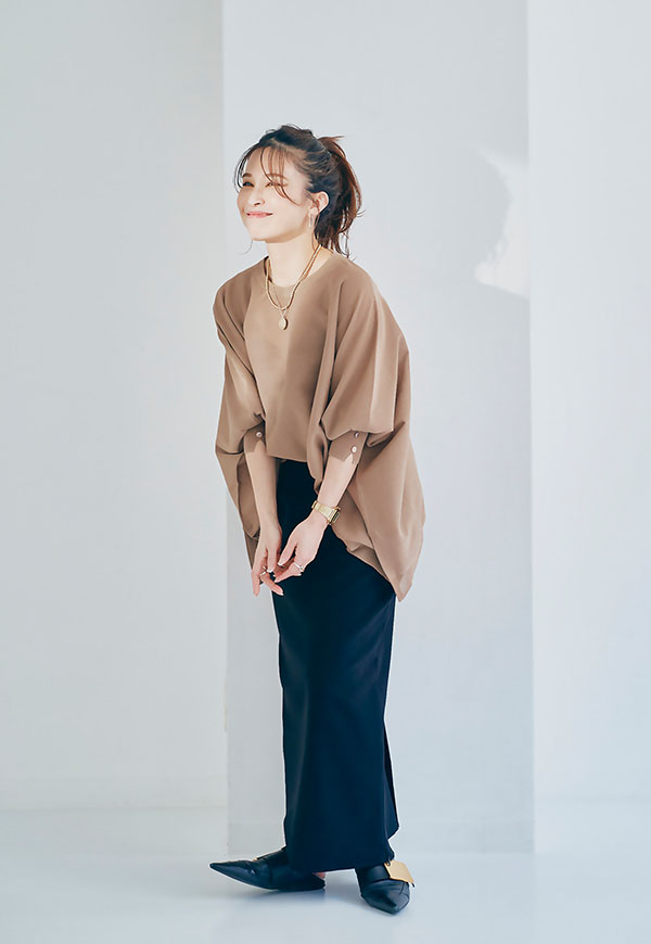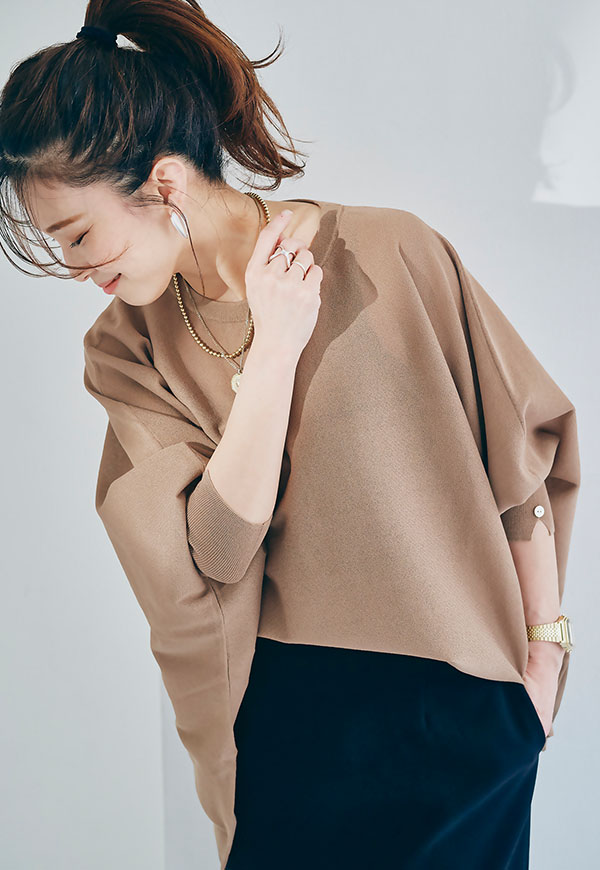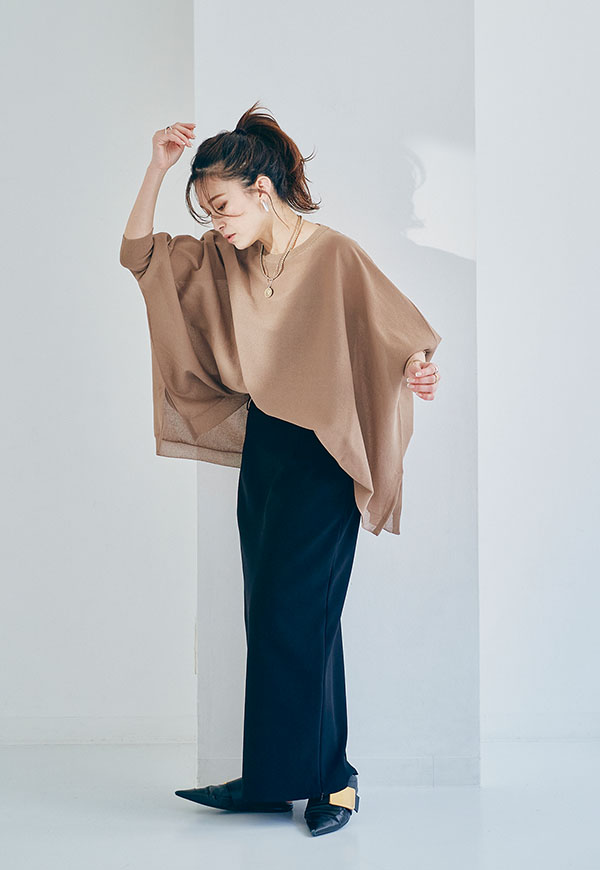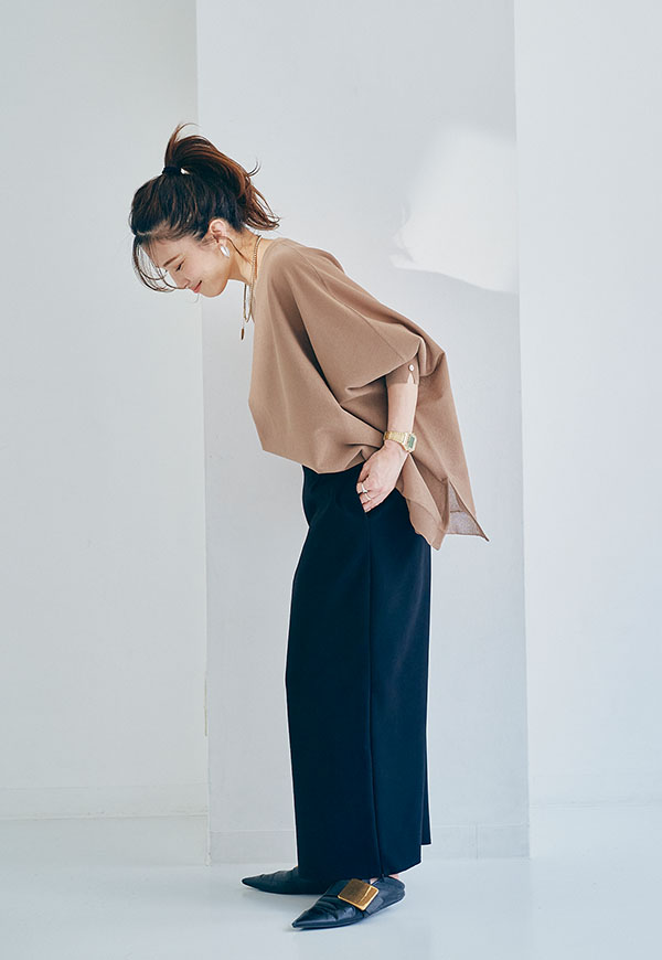スカートはもちろん、パンツスタイルと特に相性が良く、シンプルに合わせるだけでバランスの取れたスタイリングに。