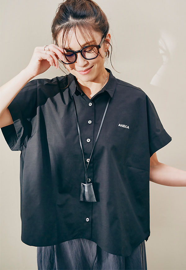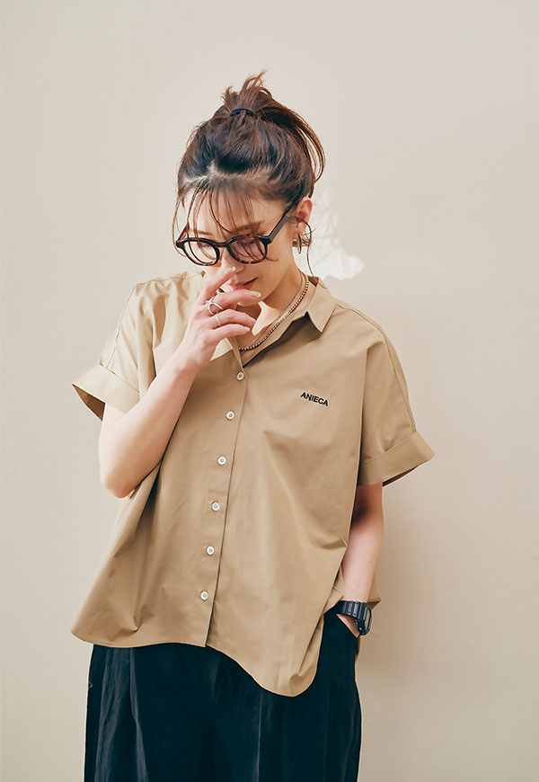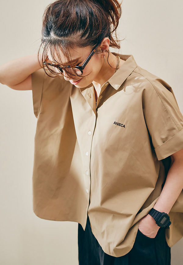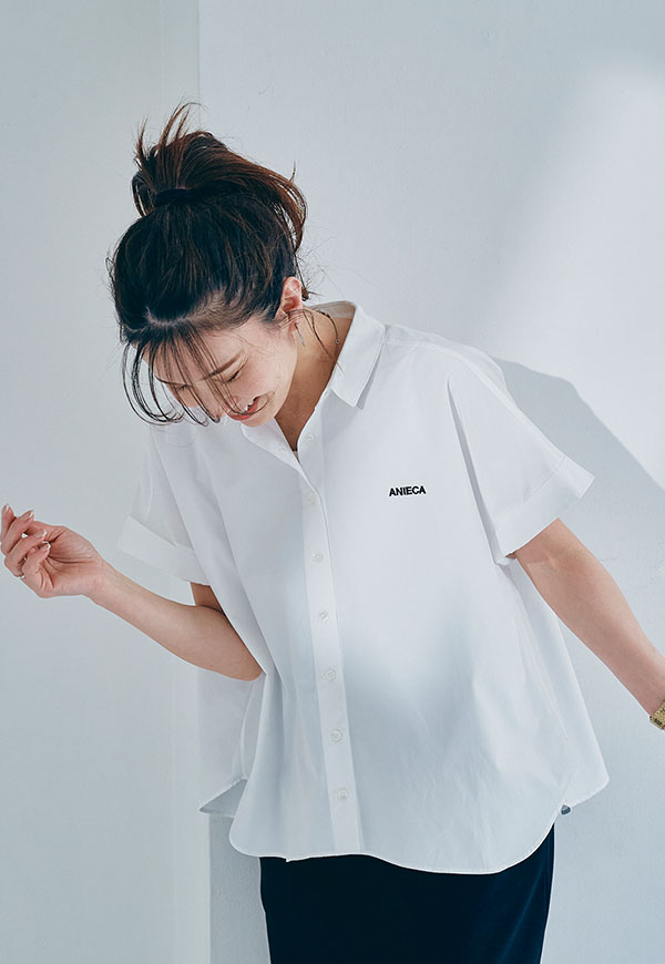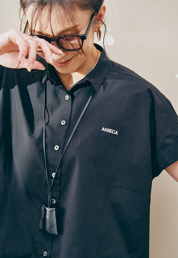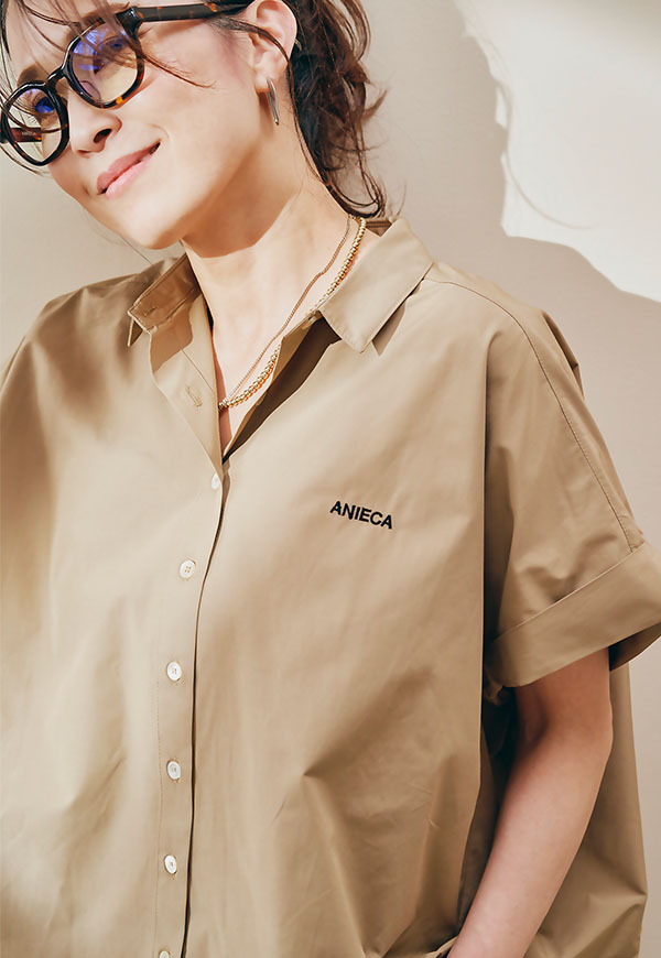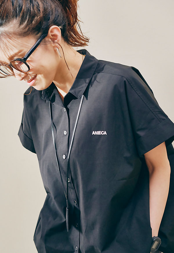 左胸にはANIECAロゴを刺繍で施し、シンプルな中にさりげないアクセントを加えています。