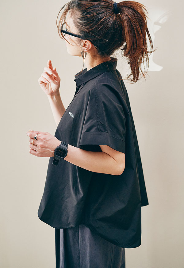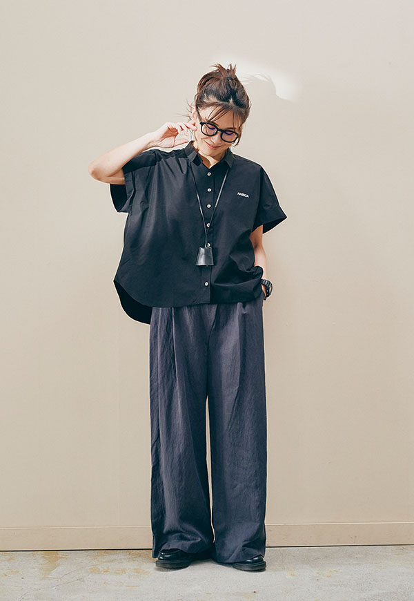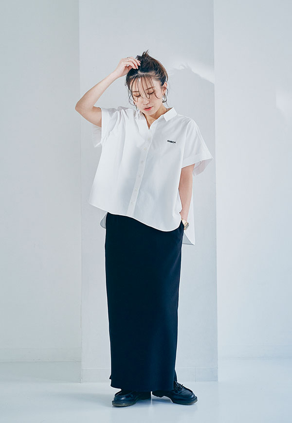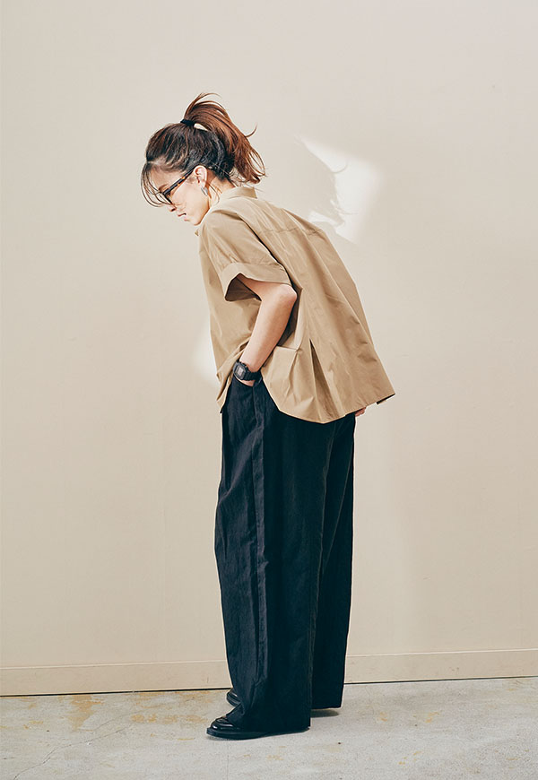 フロントイン・アウトどちらでもバランスが取りやすく、一枚で着るだけでスタイリングが決まるアイテムです。