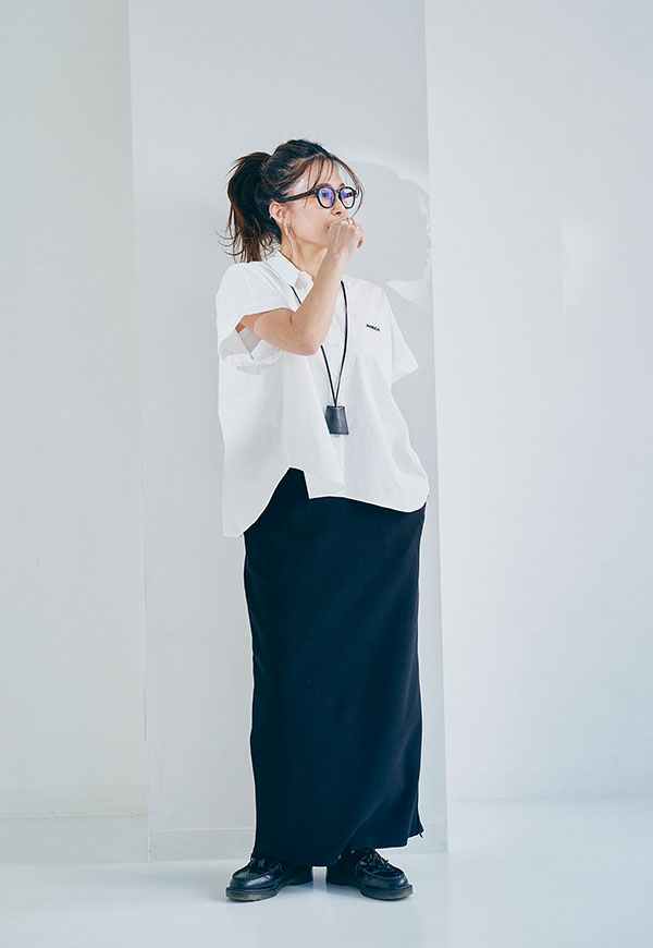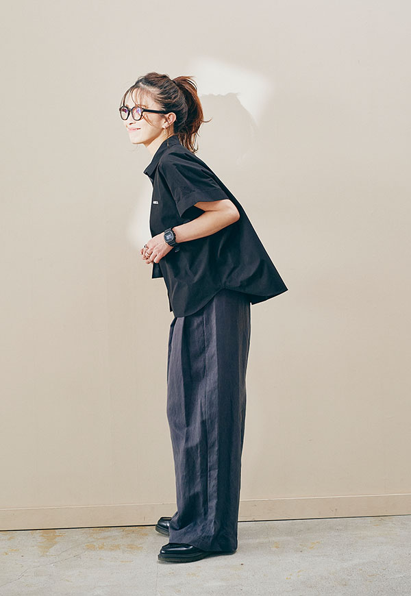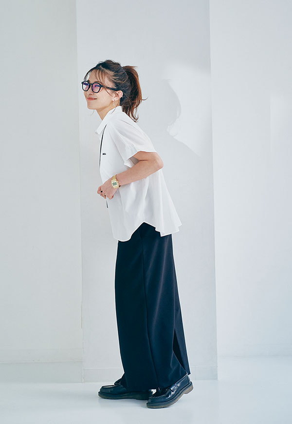 パンツを合わせてシャープにまとめたスタイリングはもちろん、スカートと合わせて女性らしい印象にも◎