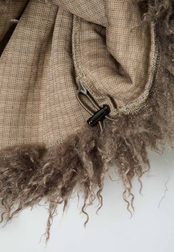 裾にドローコードを通しているので、ドローコードの絞り具合でシルエットの変化が楽しめる、コーディネートの主役級アイテムです。