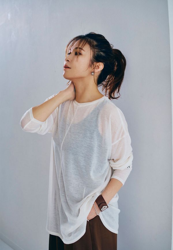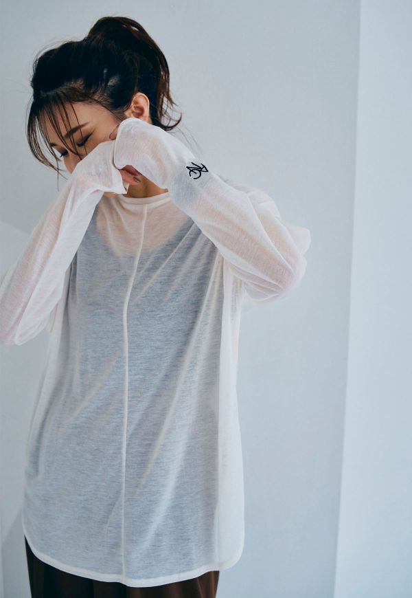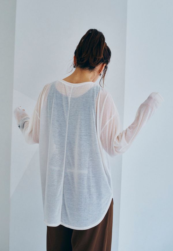 ほのかな透け感のある素材は、タンクトップやキャミソールなどインナーと合わせて着用いただき、まだ暑さの残る9月10月に秋の気分にさせてくれるアイテムです。