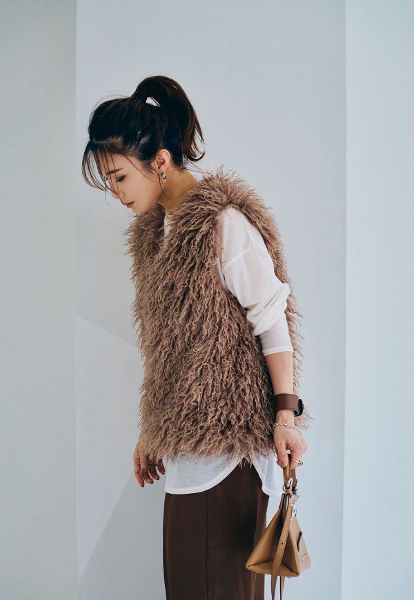 ジャケットなどのインナーとしては勿論、ベストを合わせていただくと透け感による素材感のバランスが絶妙にマッチする、1枚は持っておきたいコーディネートの幅を広げてくれるアイテムです。