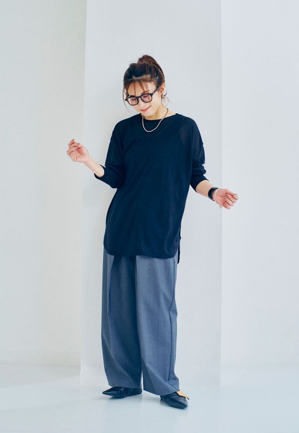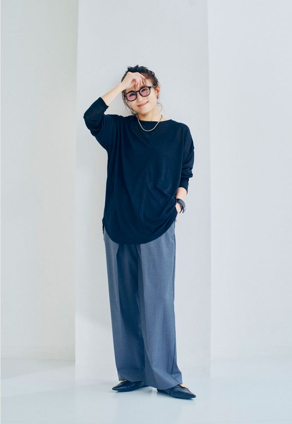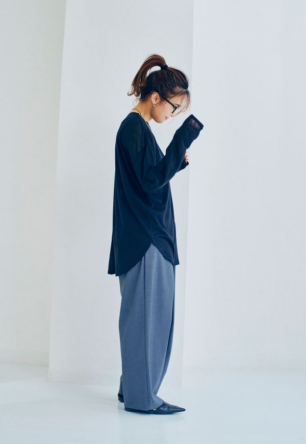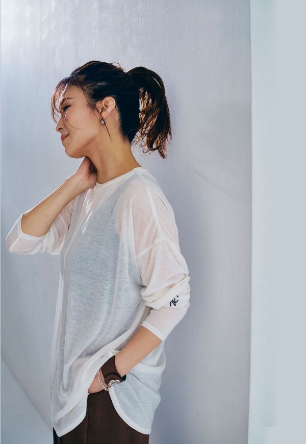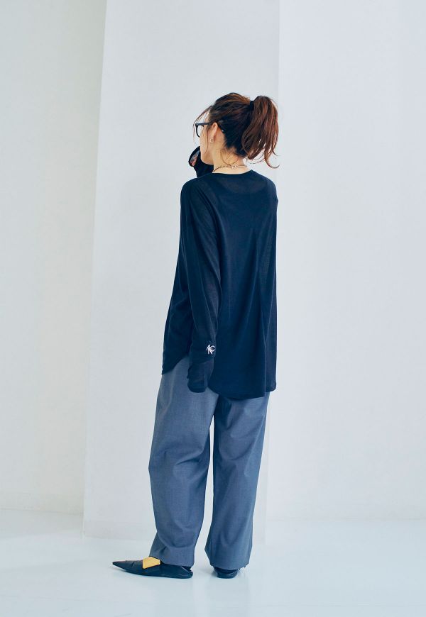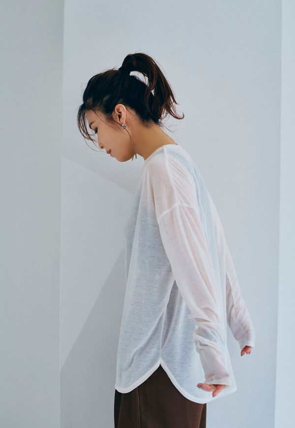 程よい透け感の繊細な素材を使用したカットソーです。ゆったりとした身幅と長めの袖丈が、カジュアルな中にも品を感じるアイテムです。左胸にANCの刺繍を施しています。