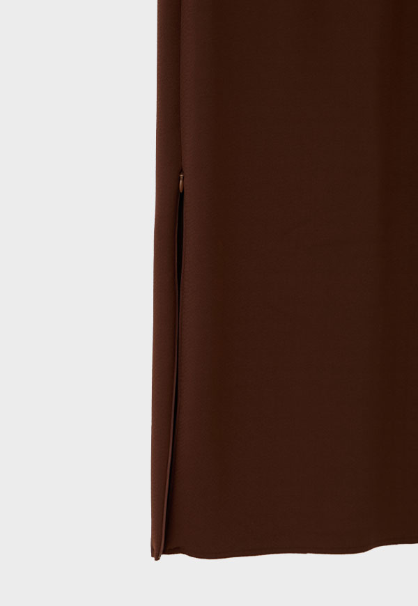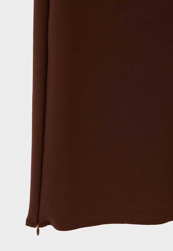 上質なポリエステル95%・ポリウレタン5%のストレッチ混素材を使用しており、ほどよいハリと伸縮性で身体のラインを拾い過ぎずに美しく見せてくれます。