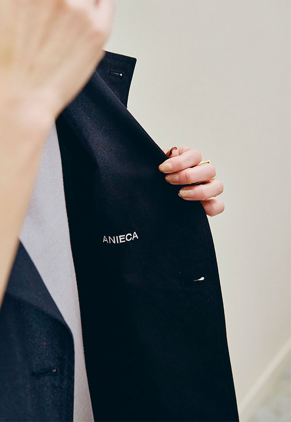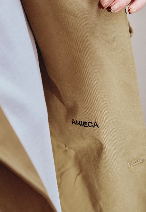 表からは目立たない内側に、さりげなくANIECAのロゴ刺繍を施し、ブランドらしいこだわりをプラスしました。