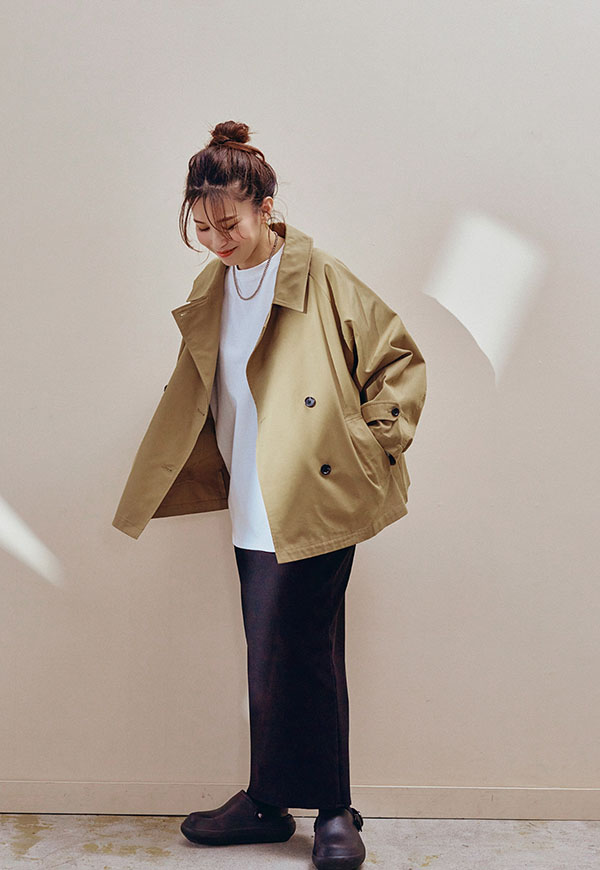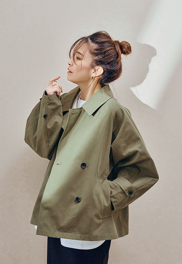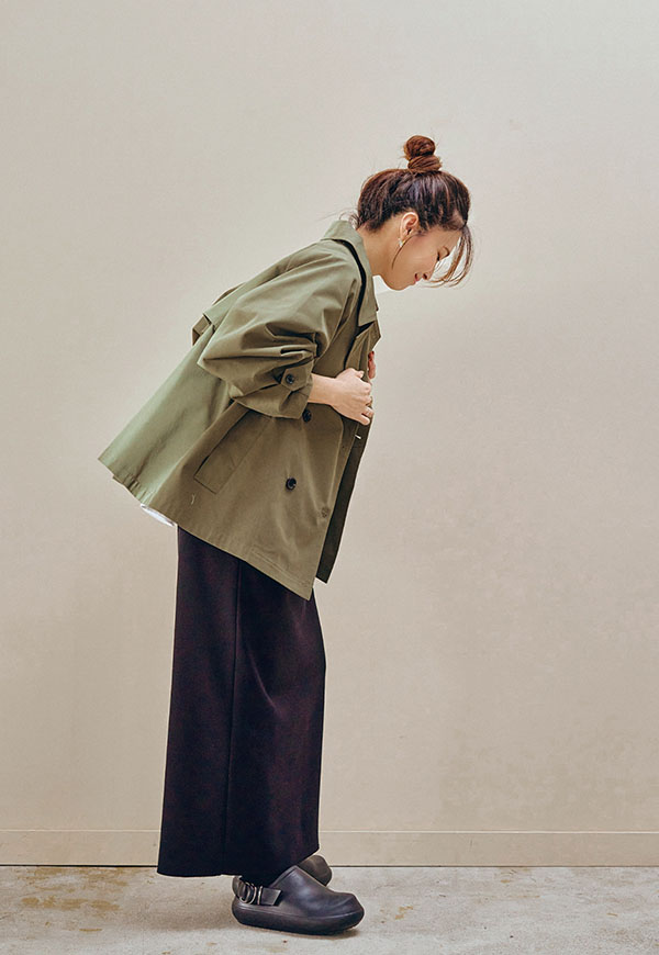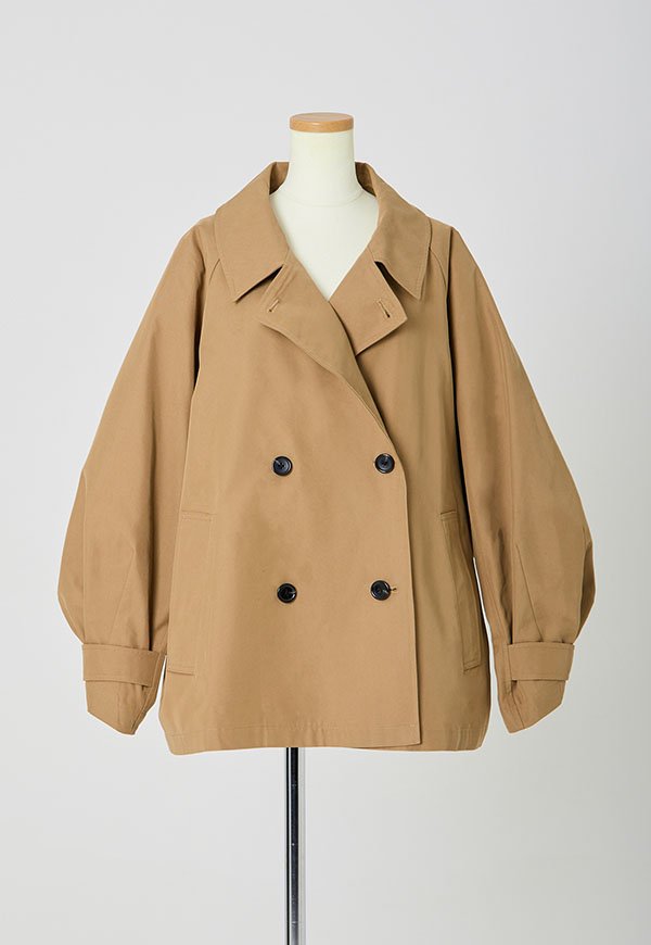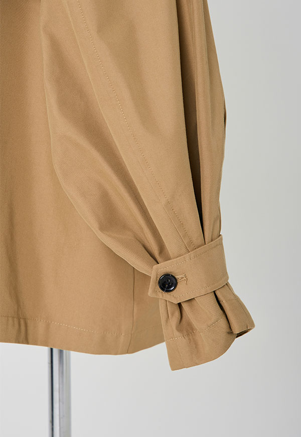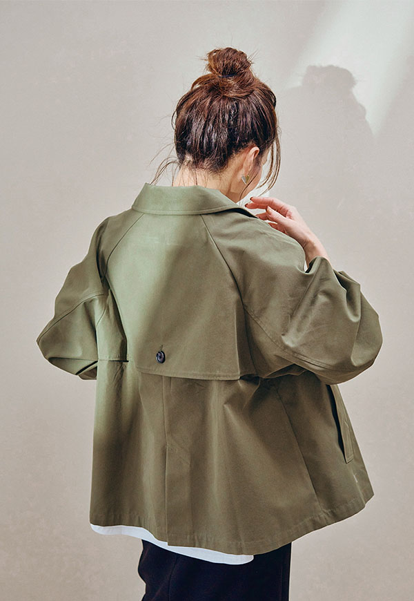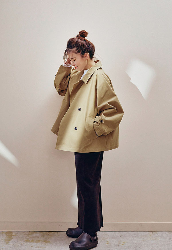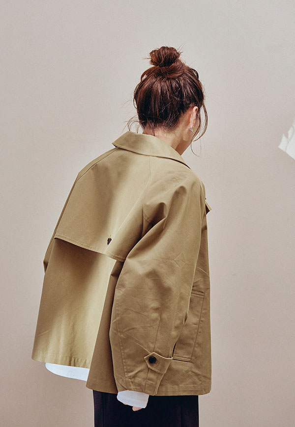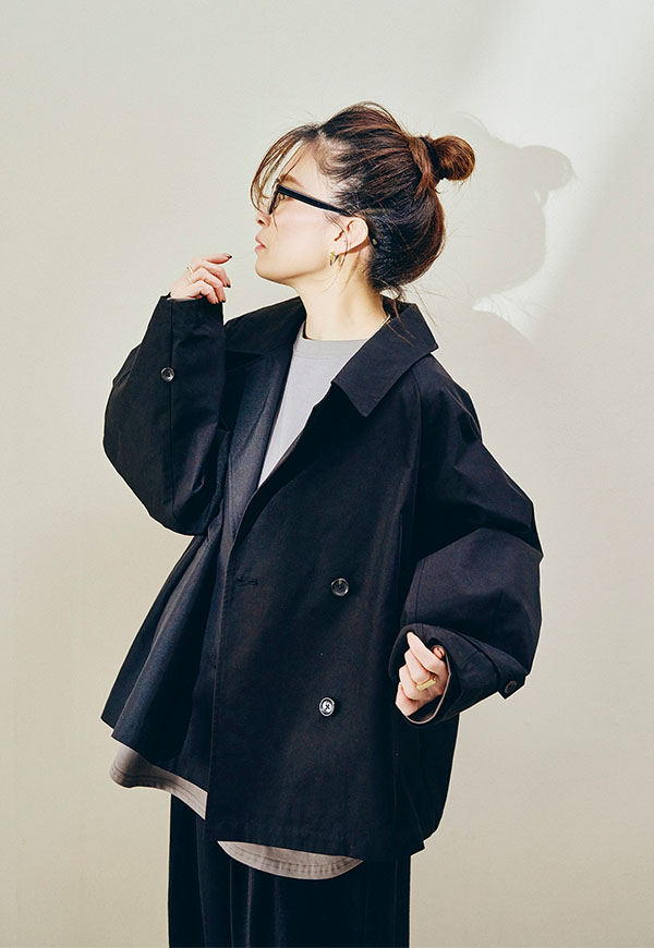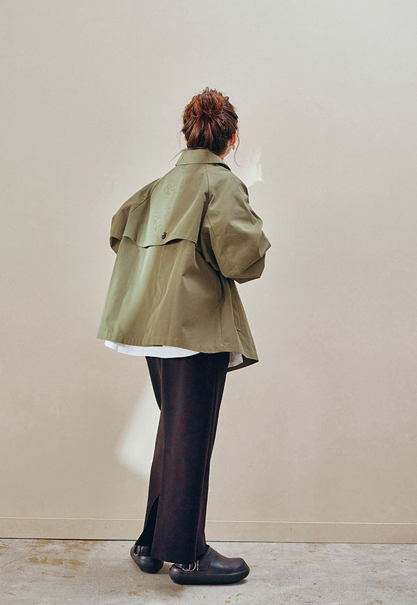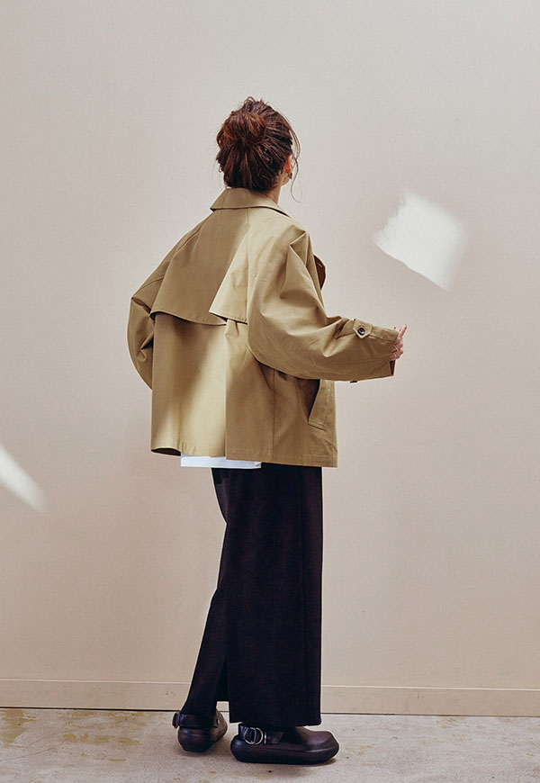 トレンチコートの王道ディテールをベースに、ANIECAらしく軽やかに仕上げたショート丈コート。
