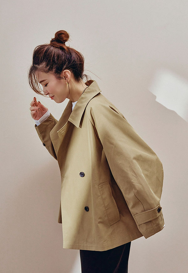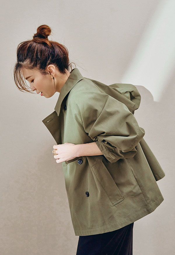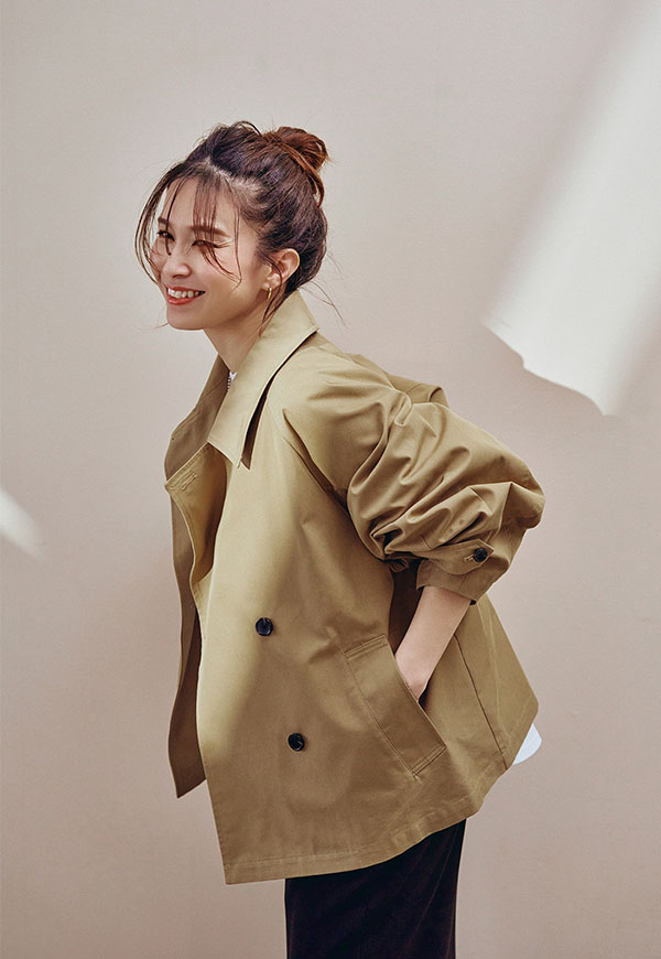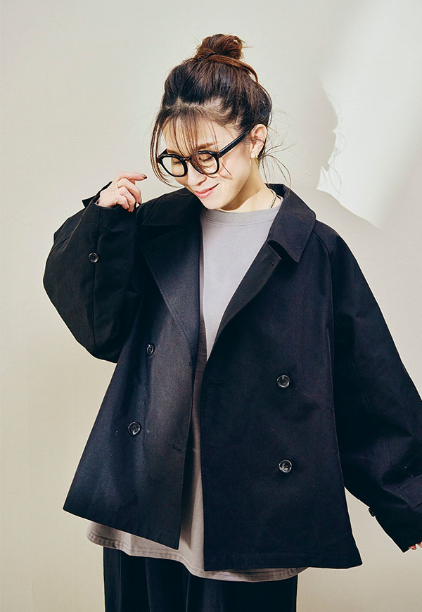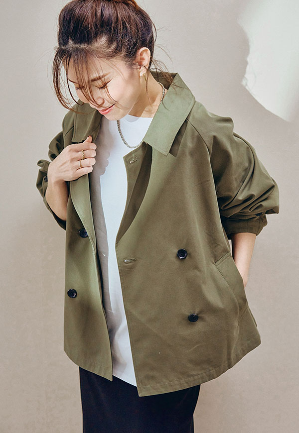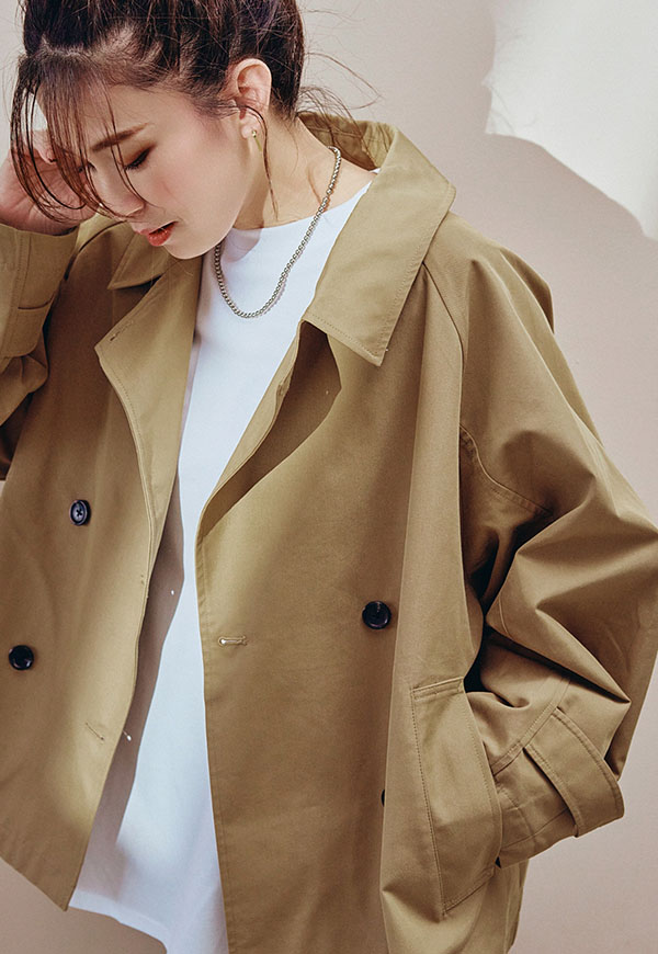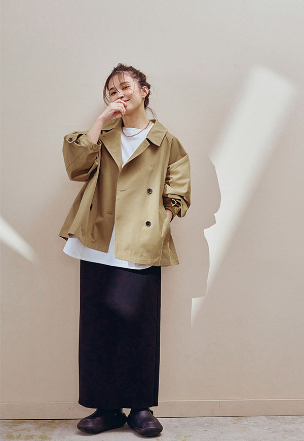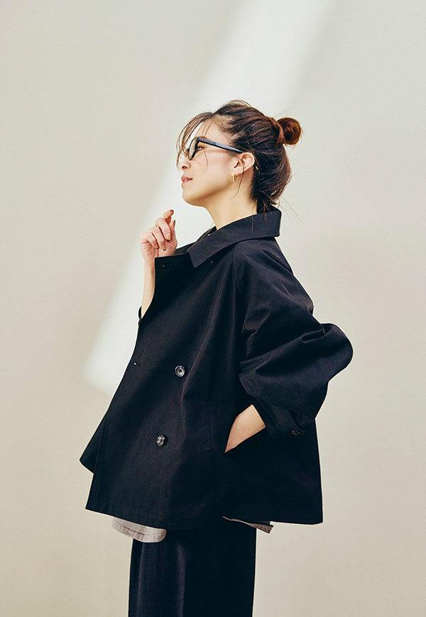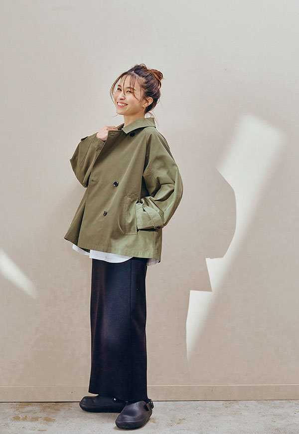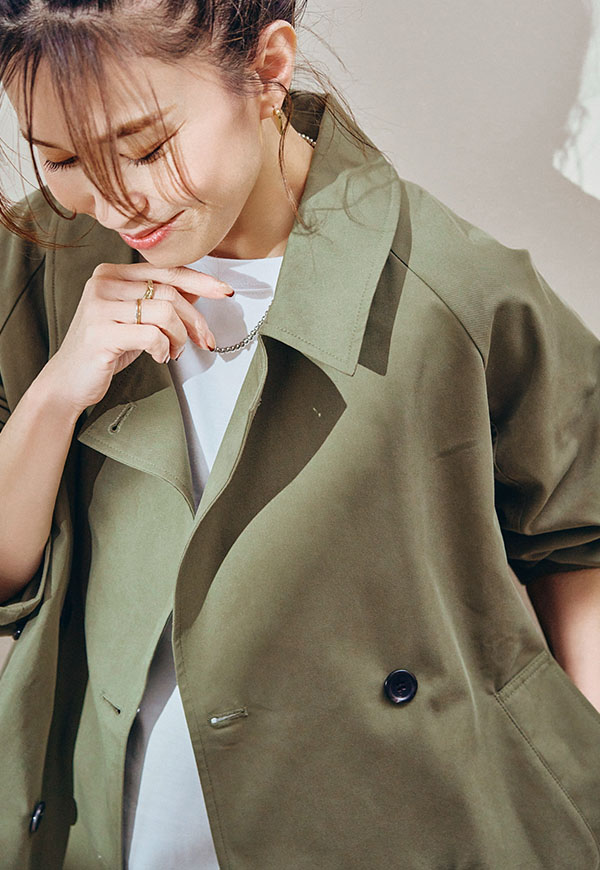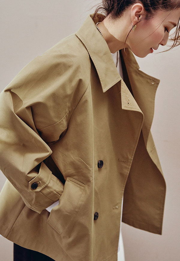トレンチコートの王道ディテールをベースに、ANIECAらしく軽やかに仕上げたショート丈コート。