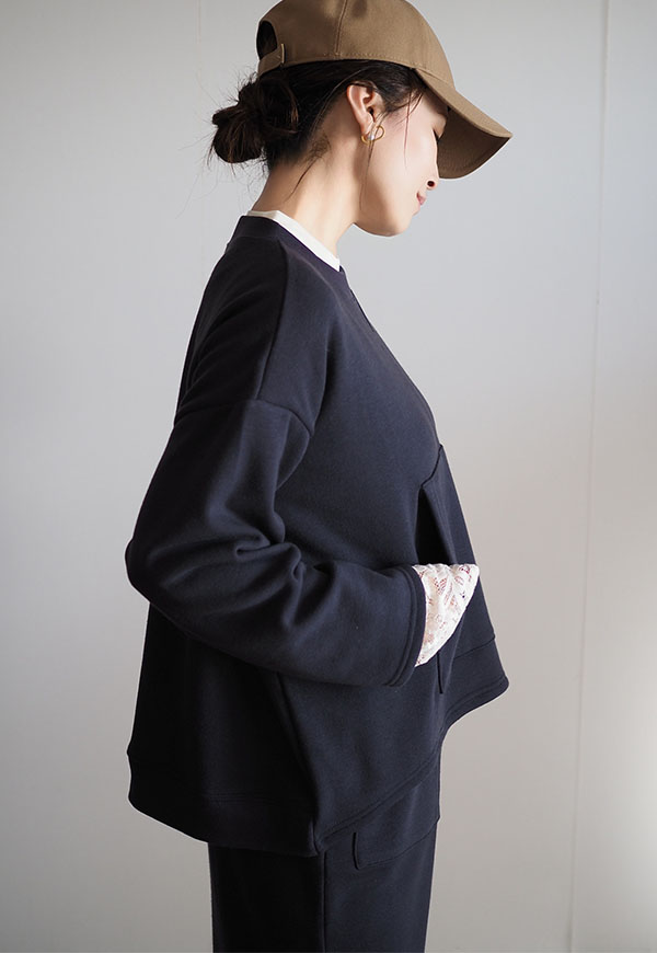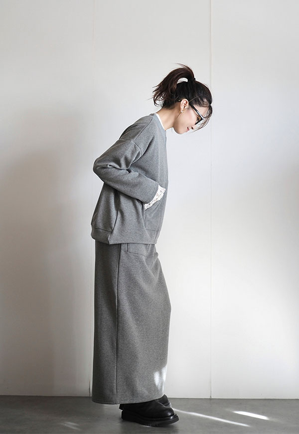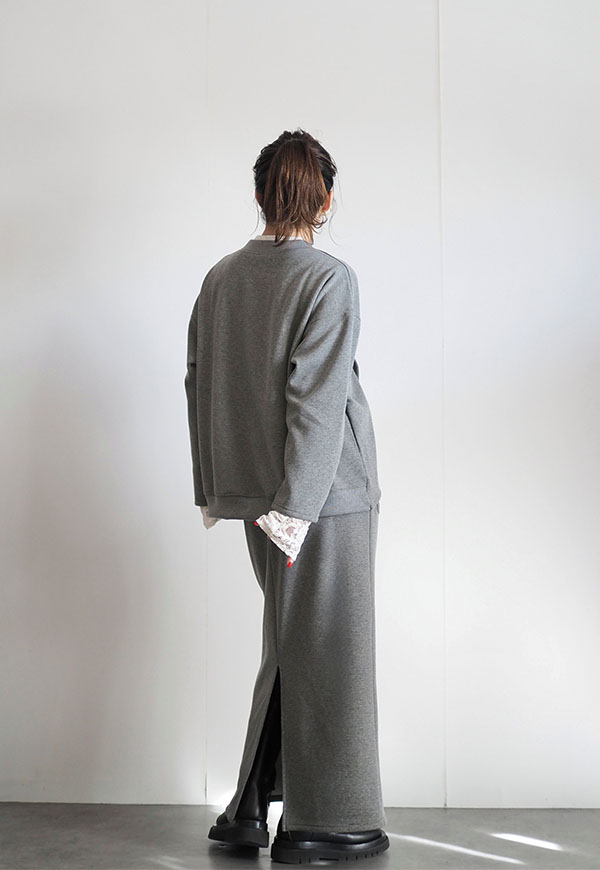 単品で着用いただくのはもちろん、同素材のスカートとセットアップで着用いただくのがおススメのスタイルです。