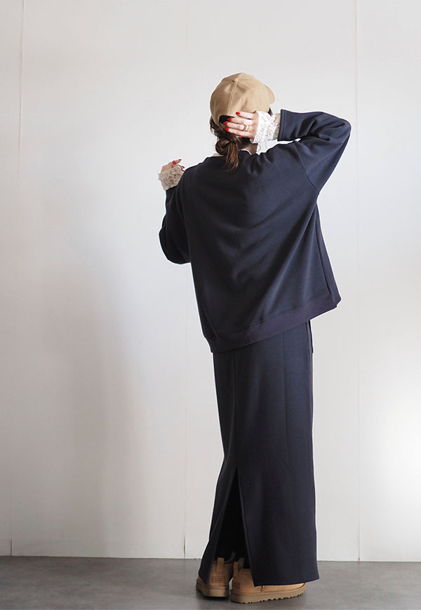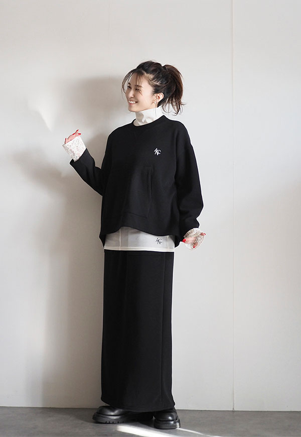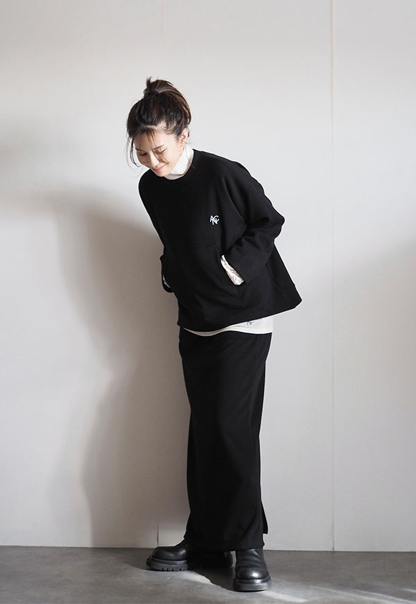 ゆとりのあるボディは、腰回りのスッキリとしたスカートとの相性も良く、今季のスカートとも相性は◎