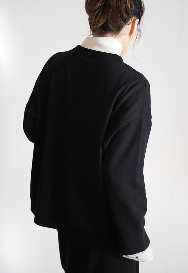 後ろ身頃にのみリブを付けて丸みのある立体的なシルエットを表現しました。
