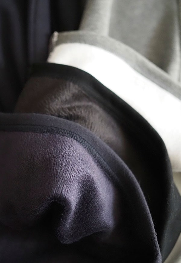 裏側に起毛加工を施したスウェット素材で作りました。
