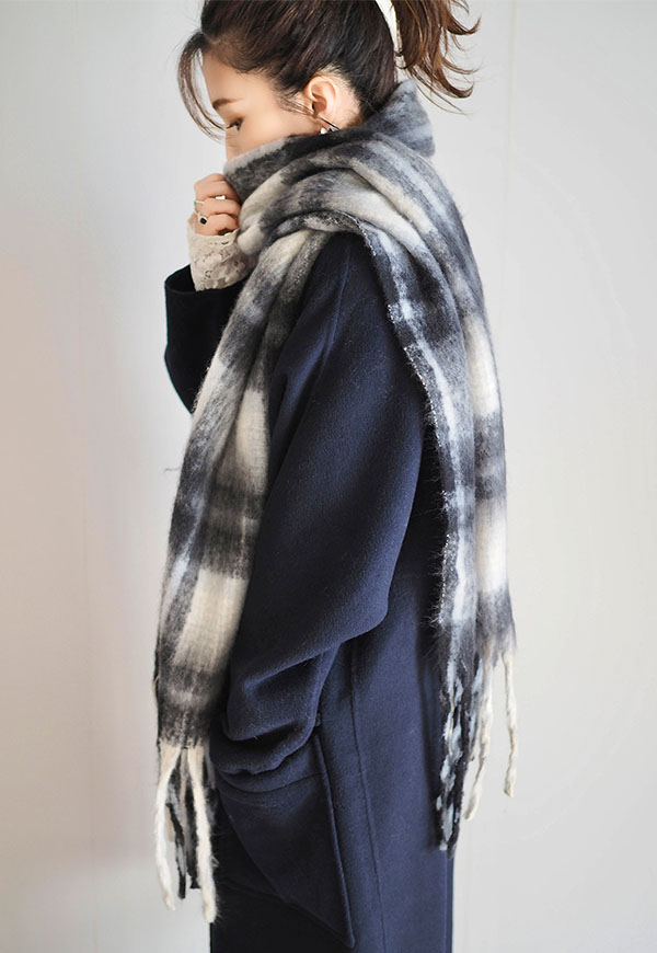 どんなアイテムにも合わせやすい上品なチェック柄のストールになります。
