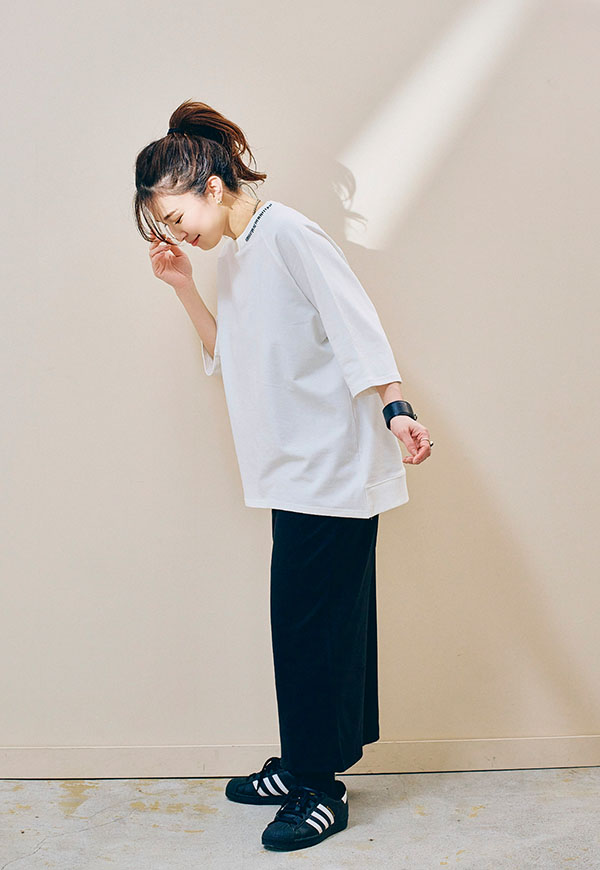 ボトム次第で表情が変わる、着回し力の高い一枚です。